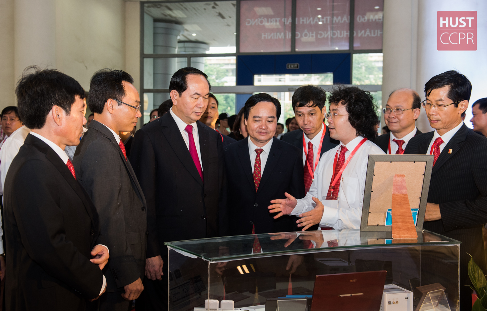 Kết thúc chương trình, Chủ tịch nước Trần Đại Quang đã đi tham quan triển lãm thành tựu khoa học công nghệ của Trường, phòng truyền thống và trồng cây lưu niệm trong khuôn viên Trường.