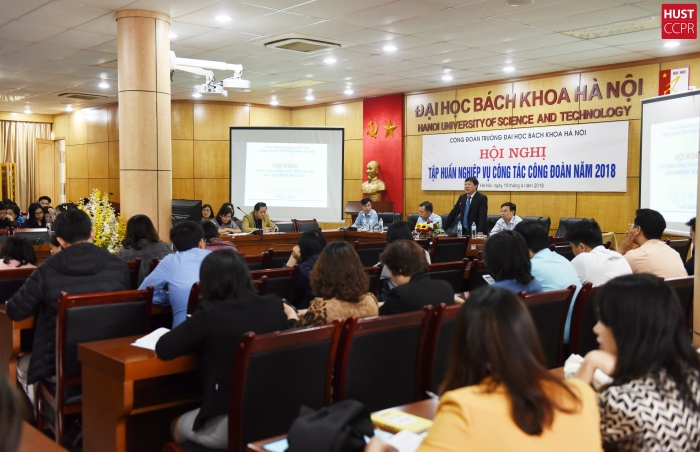 Sáng 10/04/2018, Ban chấp hành Công đoàn Trường ĐHBK Hà Nội đã tổ chức Hội nghị tập huấn tập huấn nghiệp vụ công tác Công đoàn đầu nhiệm kỳ 2017-2022 cho hơn 200 cán bộ phụ trách công đoàn đơn vị trong toàn Trường.