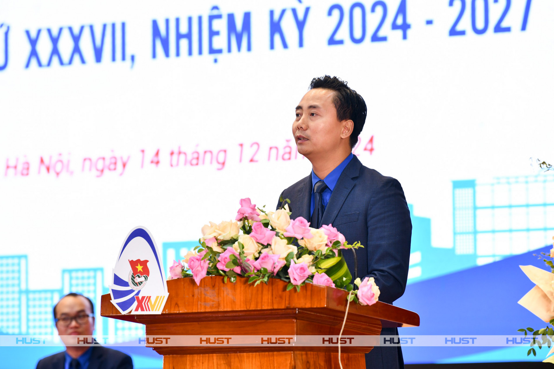 Đ/c Trương Công Tuấn – Bí thư Đoàn Đại học Bách khoa Hà Nội khoá XXXVI Báo cáo kết quả công tác Đoàn và phong trào sinh viên