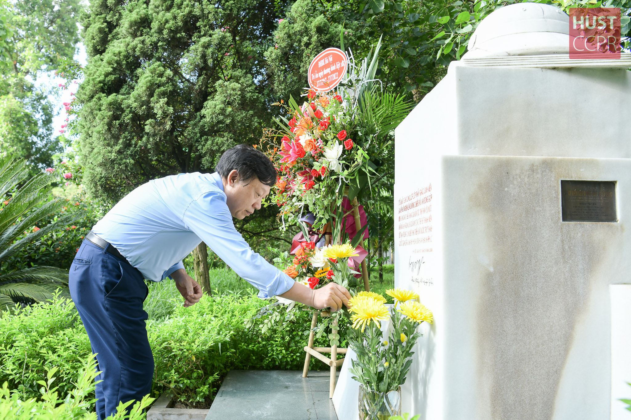 TS. Bùi Đức Hùng, Phó Bí thư thường trực Đảng ủy Trường Đại học Bách khoa Hà Nội, dẫn đầu đoàn dâng hoa tưởng nhớ