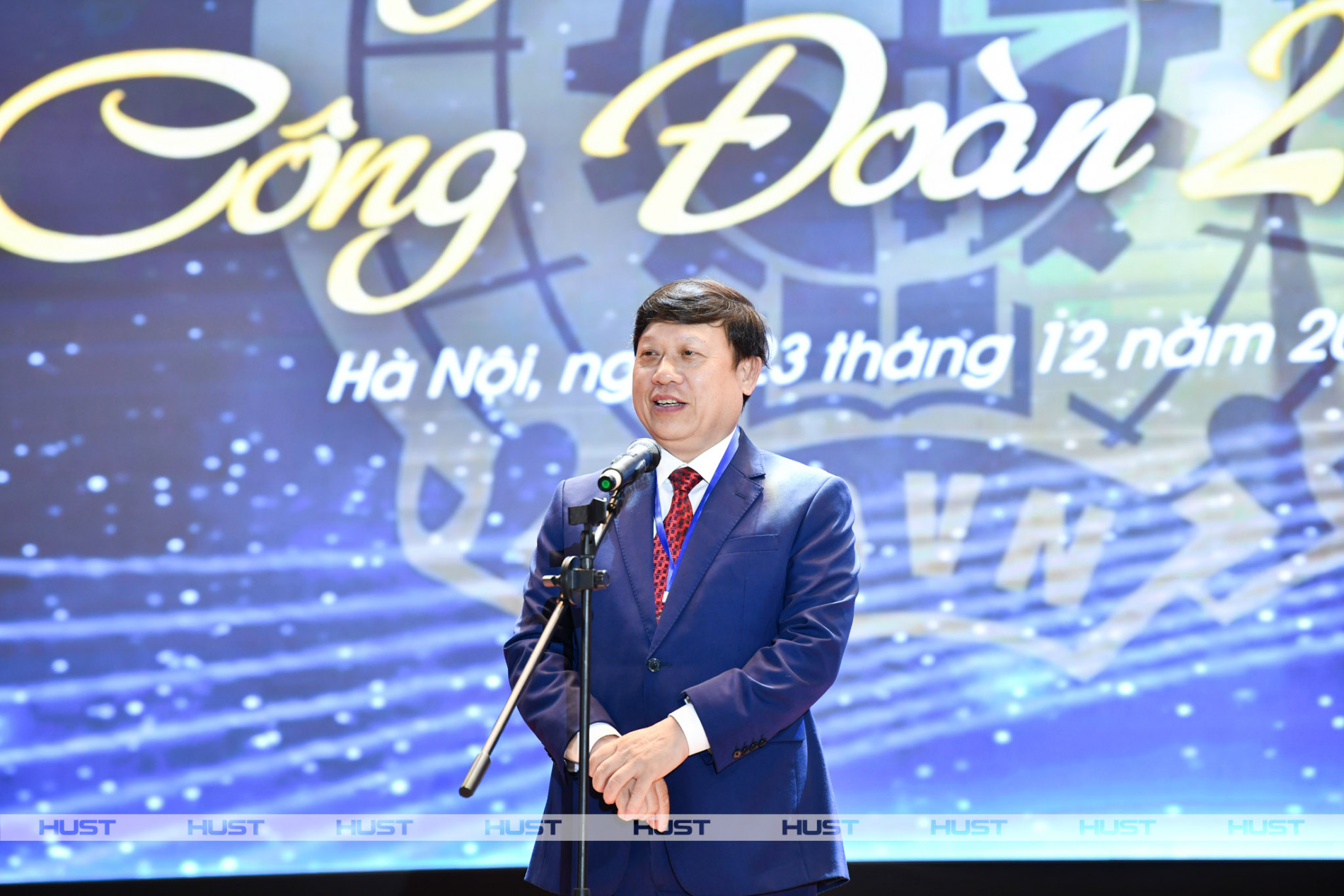 PGS. Bùi Đức Hùng, Chủ tịch Công đoàn đại học phát biểu khai mạc Hội thi tiếng hát Karaoke Công đoàn ĐHBK Hà Nội 2023