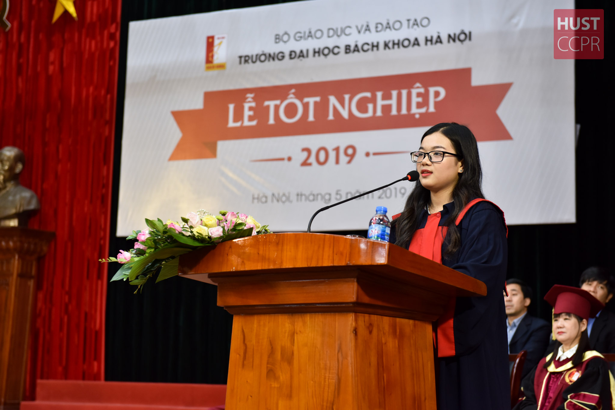 Mỗi chúng ta ai cũng có một câu chuyện để kể về Bách khoa, dù khác nhau nhưng chúng ta đều có chung một cảm xúc, một tình yêu dành cho nơi này. Mình mong rằng tất cả các bạn sinh viên tốt nghiệp hôm nay sẽ thành công và tỏa sáng ở lĩnh vực của mình. Em cũng xin gửi lời cam kết tới thầy cô và Trường, rằng em và các bạn sẽ luôn nỗ lực hết mình, luôn giữ vững sự tự tin và sẽ mãi tự hào là những kỹ sư Bách khoa để không phụ sự kỳ vọng của các thầy cô”.