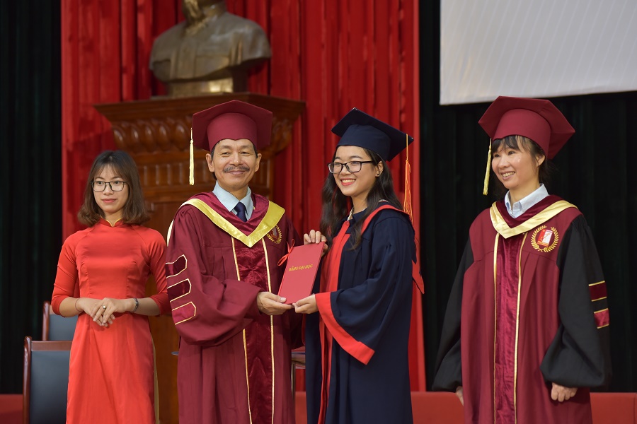 Tại Lễ trao bằng, PGS Trần Văn Tớp cùng đại diện lãnh đạo các Viện đào tạo chuyên môn đã trực tiếp trao bằng cho các tân cử nhân, kỹ sư dưới sự chứng kiến của các thầy cô giáo Viện trưởng, Phó Viện trưởng, Phòng Đào tạo, Phòng Công tác sinh viên đã có mặt trên sân khấu.