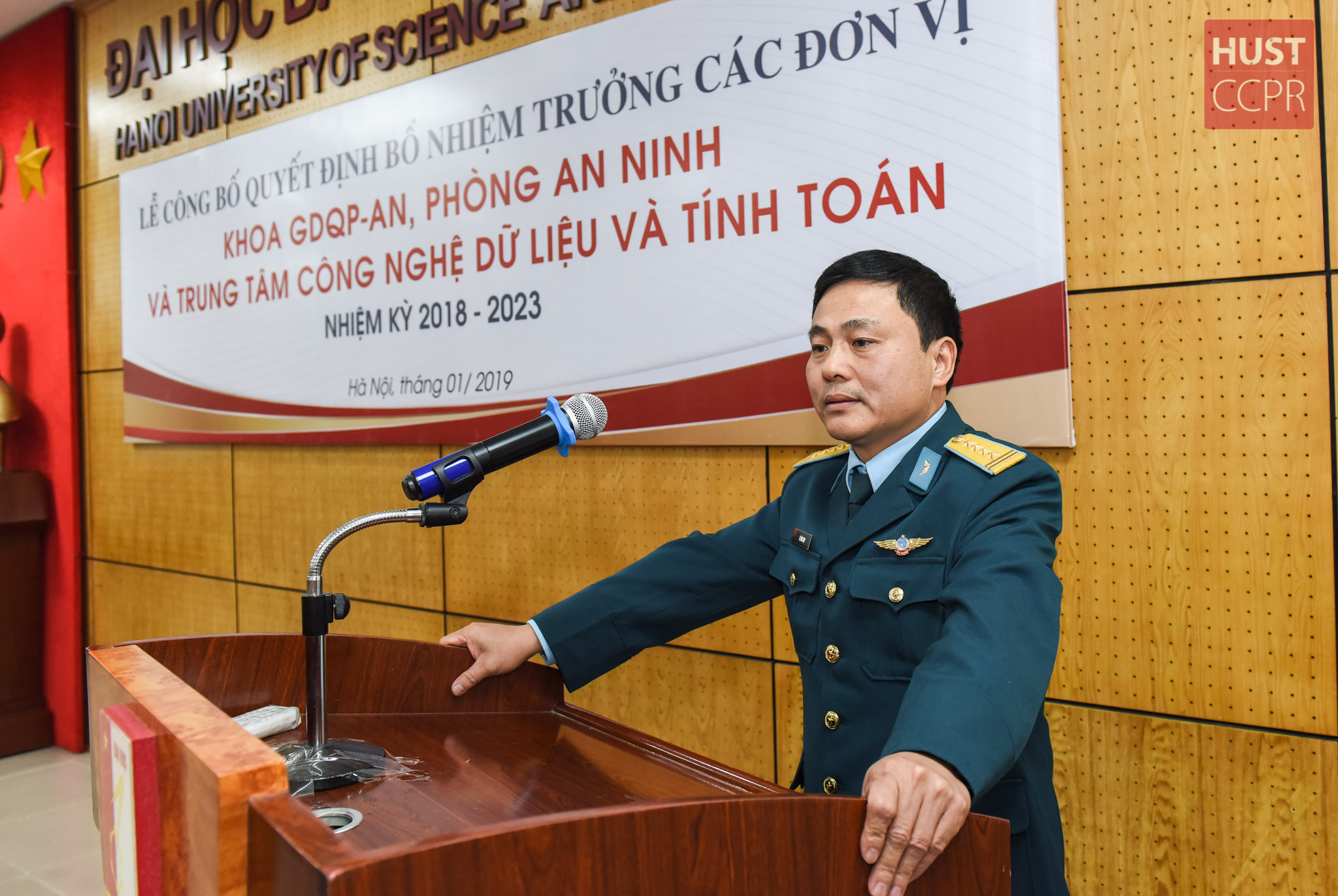Mở đầu buổi Lễ, PGS Trần Ngọc Khiêm – Trưởng Phòng Tổ chức cán bộ công bố Quyết định bổ nhiệm chức danh Trưởng các đơn vị: Khoa Giáo dục Quốc phòng An ninh, Phòng An ninh, và Trung tâm Công nghệ Dữ liệu và Tính toán.