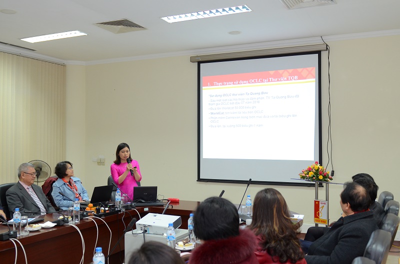Năm 2015, Thư viện Tạ Quang Bửu là đơn vị đi đầu tiên trong cả nước tham gia OCLC. Sau 3 năm tham gia, Thư viện đã đạt được nhiều thành tựu đáng kể. Chia sẻ những kết quả đó, tại buổi tọa đàm, ThS Phạm Thị Lan đã báo cáo thực trạng và định hướng của Thư viện Tạ Quang Bửu trong việc sử dụng OCLC.