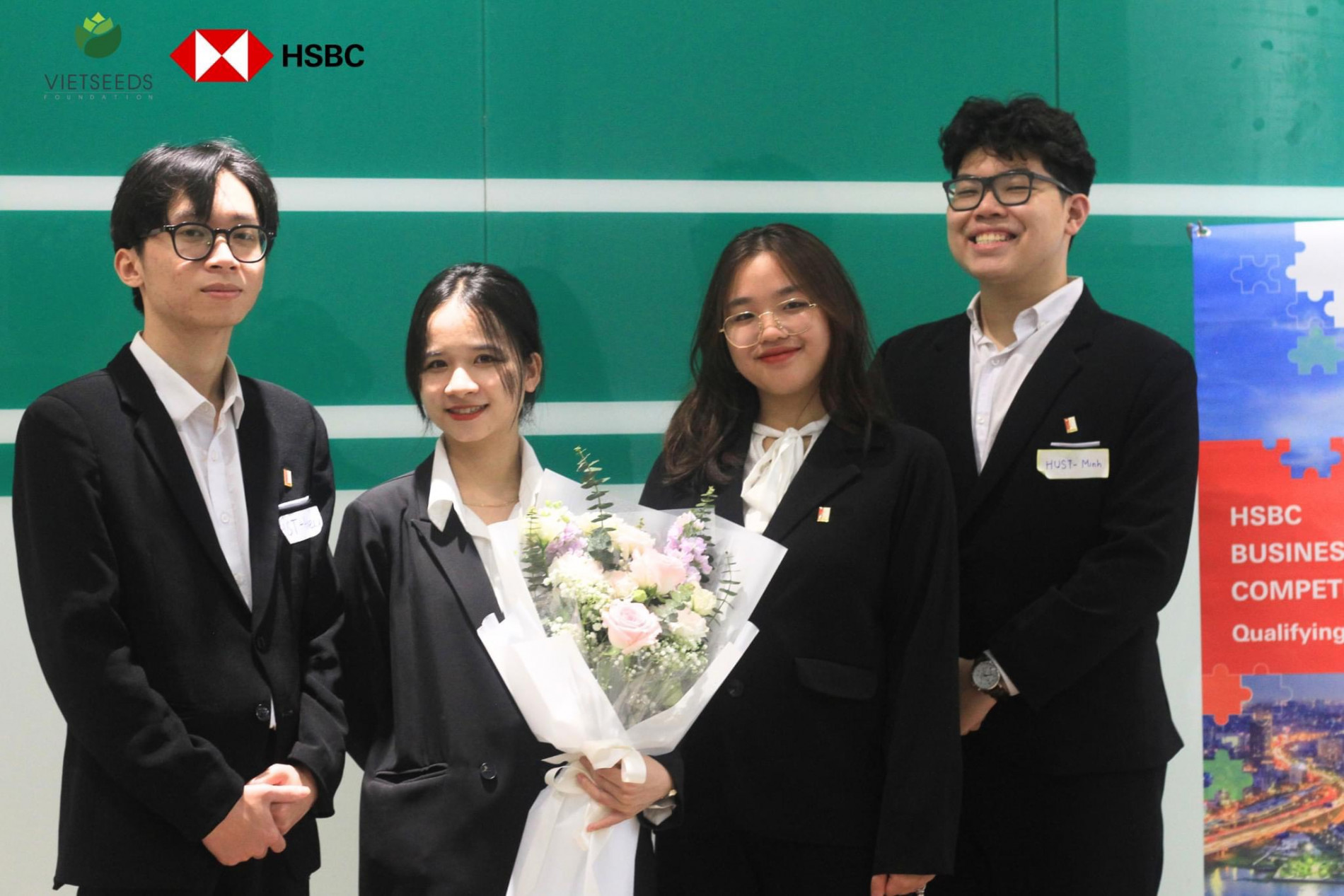 Lâm Thị Ánh (thứ 2 từ phải sang) cùng các sinh viên Viện Kinh tế và Quản lý trong cuộc thi HSBC Business Case