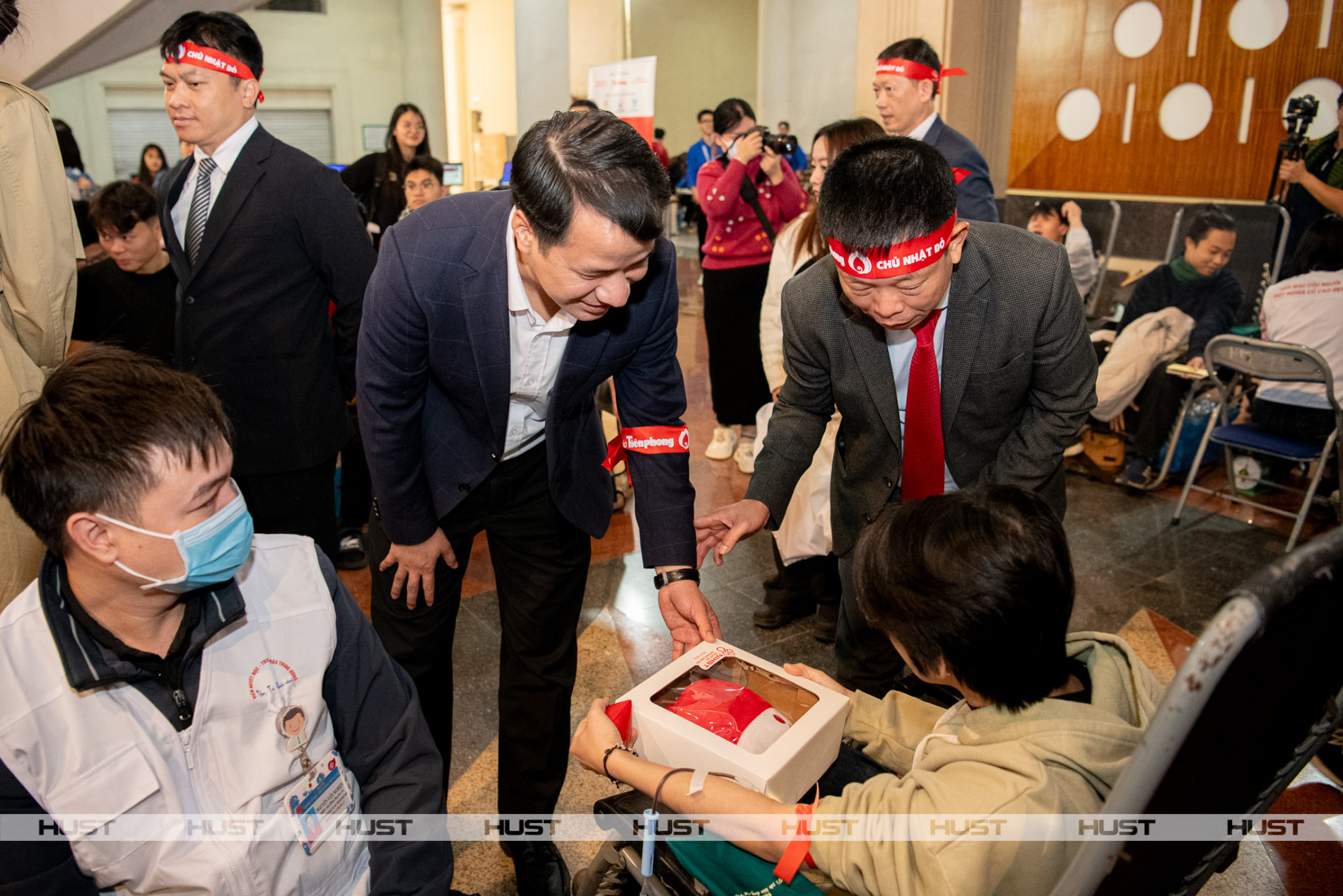 Đến với Chủ Nhật Đỏ, nhiều người Bách khoa đã nhiệt tình hiến máu cứu người. Các thầy, cô giáo cùng hàng dài sinh viên Bách khoa Hà Nội xếp hàng chờ tới lượt hiến máu. Màu áo Bách khoa đỏ rực sưởi ấm cả trời đông giá lạnh, kết nối những trái tim nhân ái, nâng cao nhận thức về việc hiến máu, cứu người cho cộng đồng.