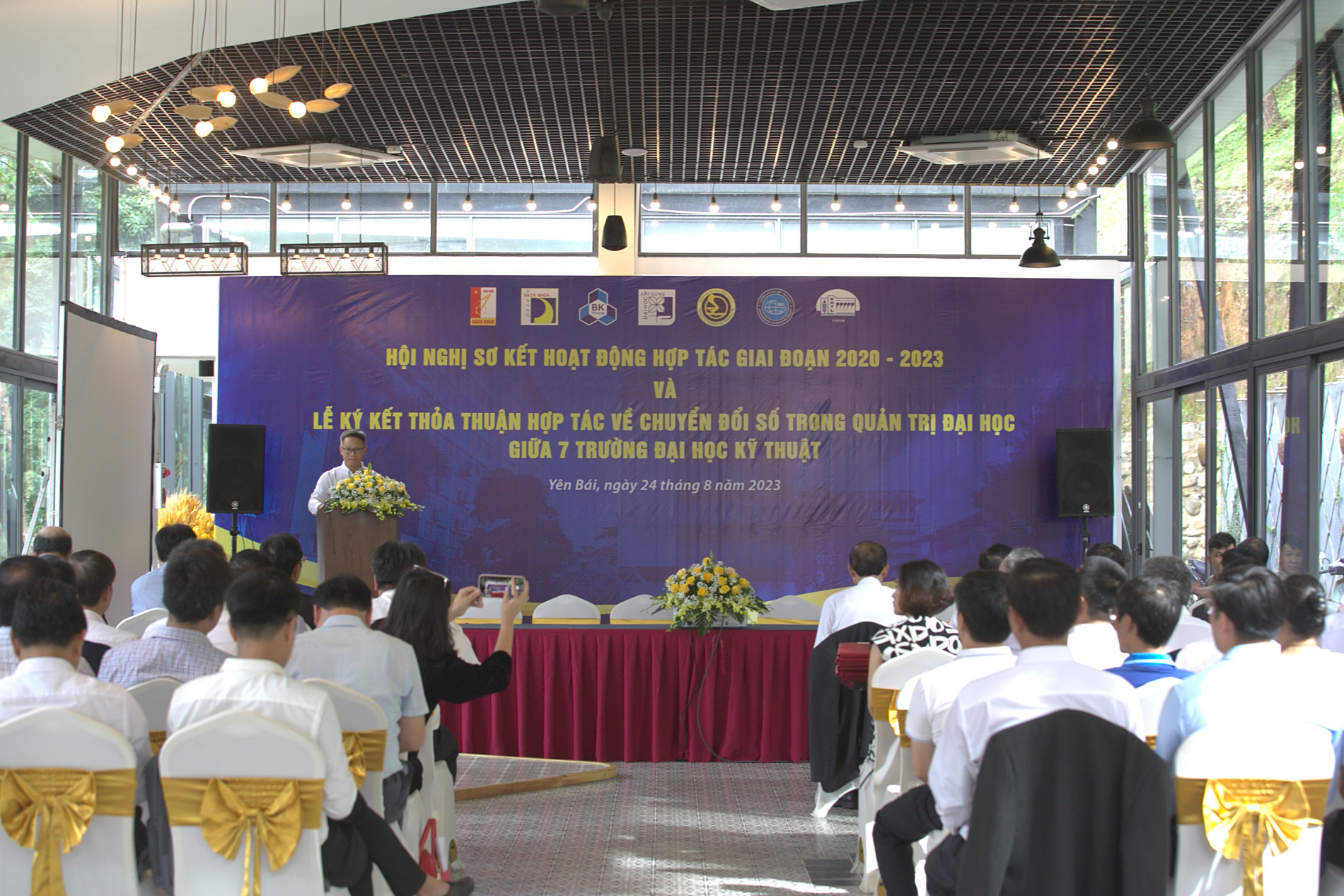 Ngày 24/8/2023, tại Yên Bái, Đại học Bách khoa Hà Nội cùng 6 trường đại học kỹ thuật đã tổ chức Hội nghị sơ kết hoạt động hợp tác giữa 07 trường Đại học kỹ thuật giai đoạn 2020-2023 nhằm đánh giá kết quả các hoạt động đã triển khai trong giai đoạn vừa qua cũng như những khó khăn, vướng mắc còn tồn tại để cùng nhau trao đổi đưa ra các giải pháp nhằm hoàn thiện công tác cho giai đoạn tới. Đồng thời, Nhóm 07 trường ký kết hợp tác về hoạt động chuyển đổi số trong quản trị đại học với mục tiêu chung là cùng nhau phát triển, phát huy thế mạnh của mỗi trường để thúc đẩy mạnh mẽ hơn nữa hoạt động ứng dụng, chuyển đổi số trong quản trị đại học.