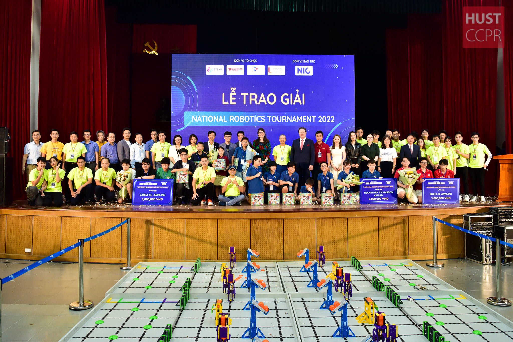 Giải đấu Giao hữu Robotics cấp Quốc gia sử dụng VEX IQ - National Robotics Tournament 2022 do STEAM for Vietnam, Trung tâm Hoa Kỳ tại Hà Nội và TP. Hồ Chí Minh cùng Đại học Bách khoa Hà Nội đồng tổ chức đã diễn ra vào Chủ nhật, ngày 25/9 vừa qua tại khuôn viên Bách khoa Hà Nội.