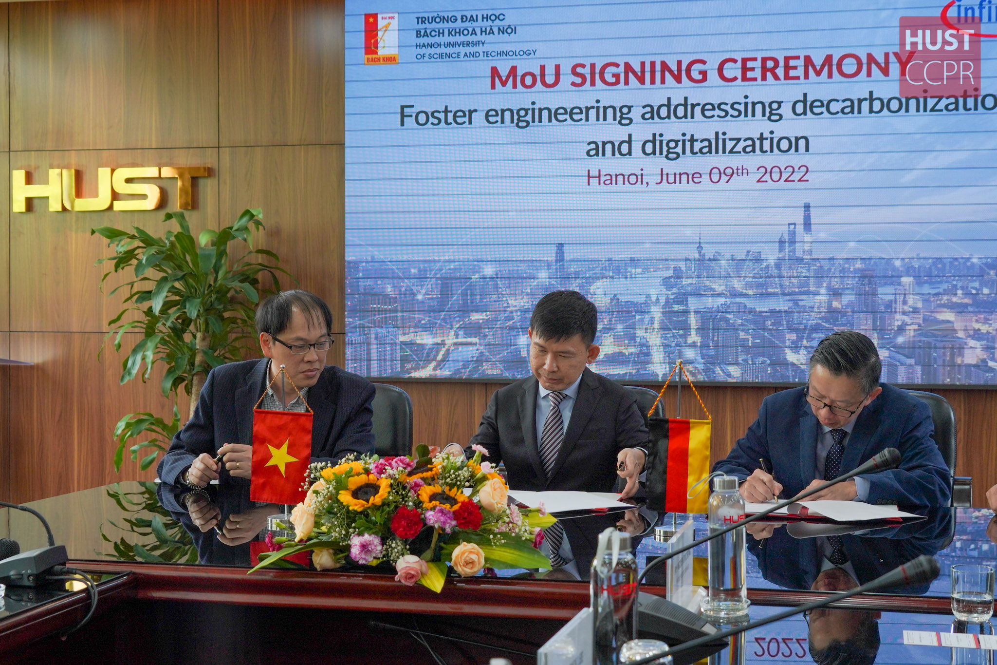 Sáng 9/6, Đại học Bách khoa Hà Nội và Công ty Infineon Technologies ký kết biên bản ghi nhớ nhằm thúc đẩy và phát triển kỹ thuật giải quyết vấn đề giảm phát thải cacbon và số hóa trong lĩnh vực Xe điện nhẹ (LEV) và Internet Vạn vật (IoT).