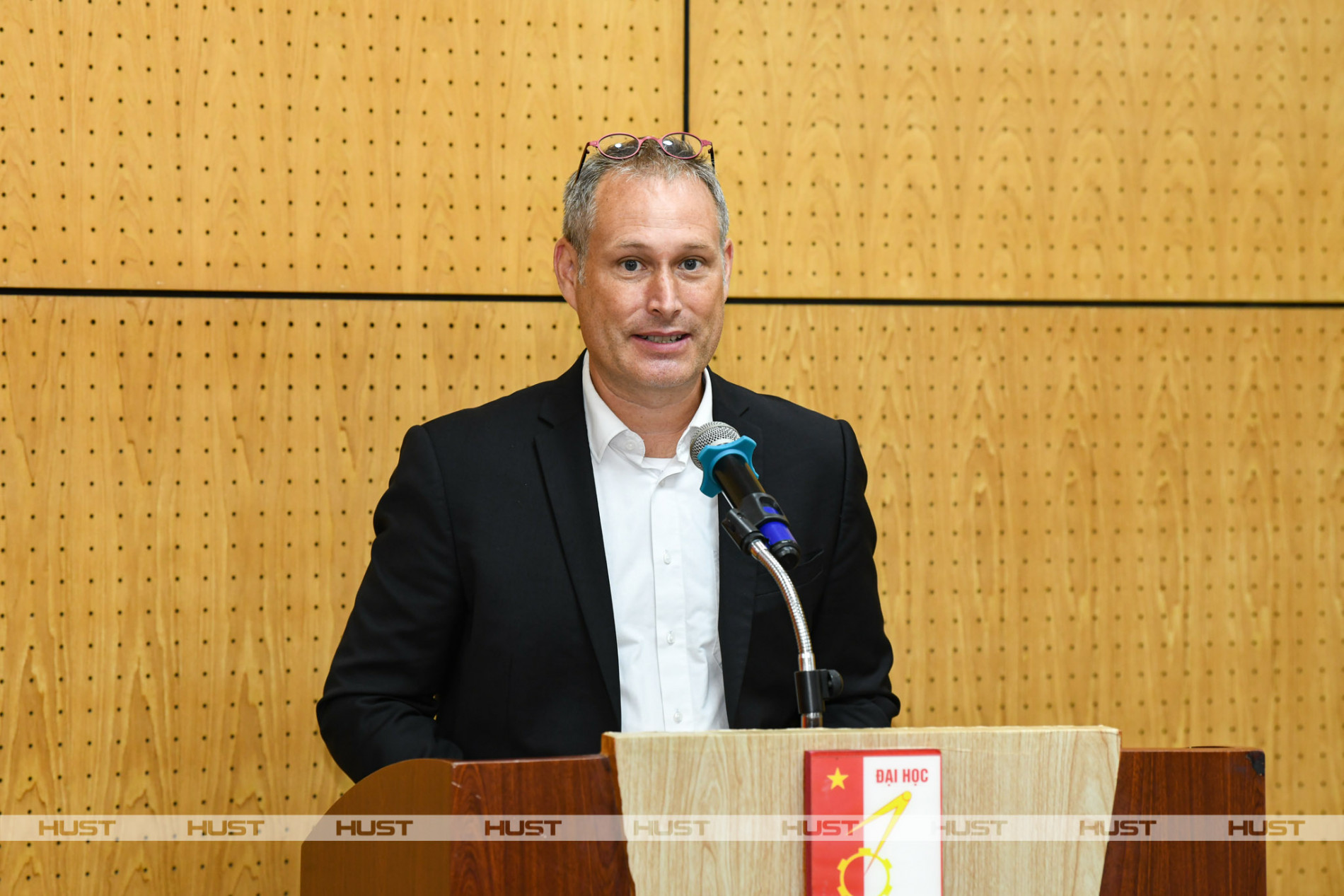 GS. Arne Cierjacks, Giám đốc điều hành chương trình HUST – HTW Dresden Summer School chia sẻ về chủ đề của chương trình trao đổi tại buổi lễ: “Chương trình này tập trung khám phá những vấn đề lớn mà nhân loại đang phải đối mặt, đặc biệt biến đổi khí hậu và sự suy thoái đa dạng sinh học. Đây là chủ đề mà chúng tôi muốn cùng tìm hiểu với sinh viên Việt Nam.”