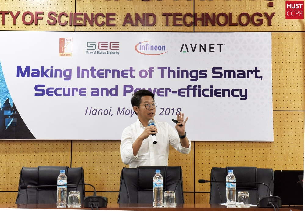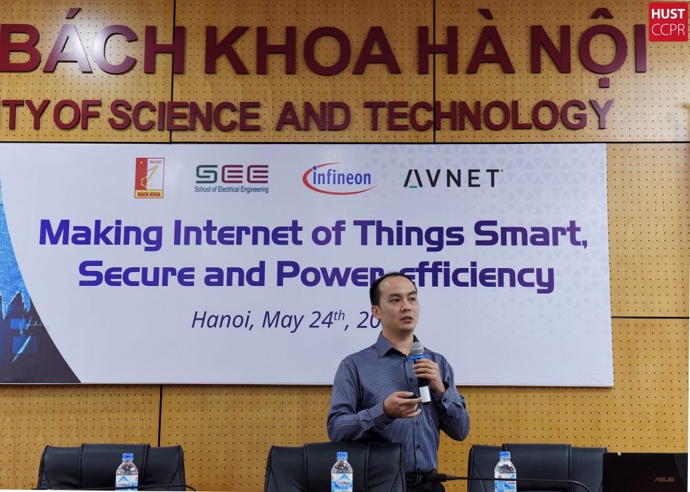 Chủ điểm chính này đã được các chuyên gia hàng đầu trong lĩnh vực IoT của hãng công nghệ lớn trên thế giới (Infineon, AVNET) trao đổi với 60 sinh viên của Viện Điện, Trường ĐHBK Hà Nội trong Hội thảo khoa học quốc tế với chủ đề “Making Internet of Things smart, secure and power efficiency” vào ngày 24/05/2018.