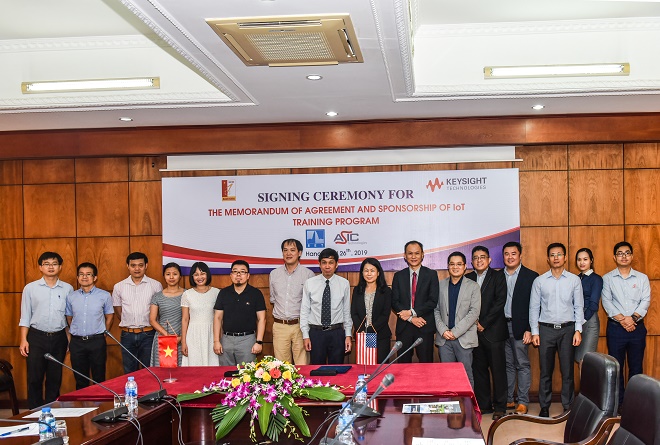 Nhằm đáp ứng yêu cầu ngành công nghiệp về IoT, đồng thời cung cấp nhân lực đáp ứng các cho nhu cầu của cuộc Cách mạng công nghệ 4.0 trong khuôn khổ Chương trình Hợp tác Giáo dục Đại học đào tạo kỹ sư, sáng nay (26/4/2019), Trường ĐHBK Hà Nội và Tập đoàn Keysight Technologies (Hoa Kỳ) đã ký biên bản hợp tác về việc tài trợ và hỗ trợ trang thiết bị kỹ thuật thực hành IoT cho sinh viên ngành Điện tử Viễn thông.
