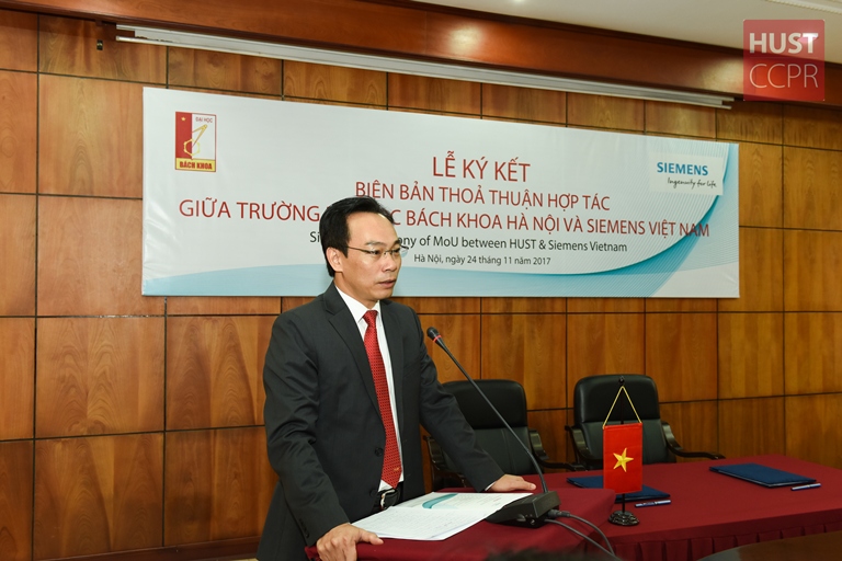 Phát biểu tại Lễ kí kết, PGS Hoàng Minh Sơn – Hiệu trưởng Trường ĐHBK Hà Nội nhấn mạnh: “Trường rất vui mừng được hợp tác với một tập đoàn toàn cầu dẫn đầu về công nghệ số như Siemens. Sự hợp tác này không chỉ sẽ giúp chúng tôi đáp ứng được tối đa nhu cầu nâng cao chất lượng giáo dục và đào tạo mà còn phù hợp với chương trình đào tạo tinh hoa hướng tới Cuộc cách mạng Công nghiệp 4.0 mang tên ELITECH của Trường. Các sinh viên của chúng tôi sẽ nhận được lợi ích to lớn bởi những trải nghiệm thực tế với công nghệ số tiên tiến trên lớp học sẽ mang lại cho các em lợi thế đáng kể khi bắt đầu làm việc trong lĩnh vực chế tạo và sản xuất”.
