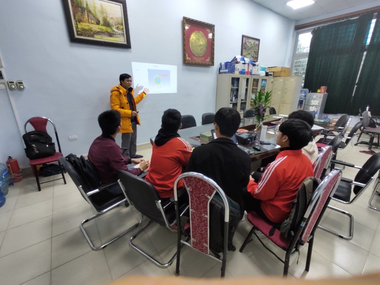 Buổi họp của thầy giáo Ngô Ích Long và các bạn sinh viên. Ảnh: NVCC.
