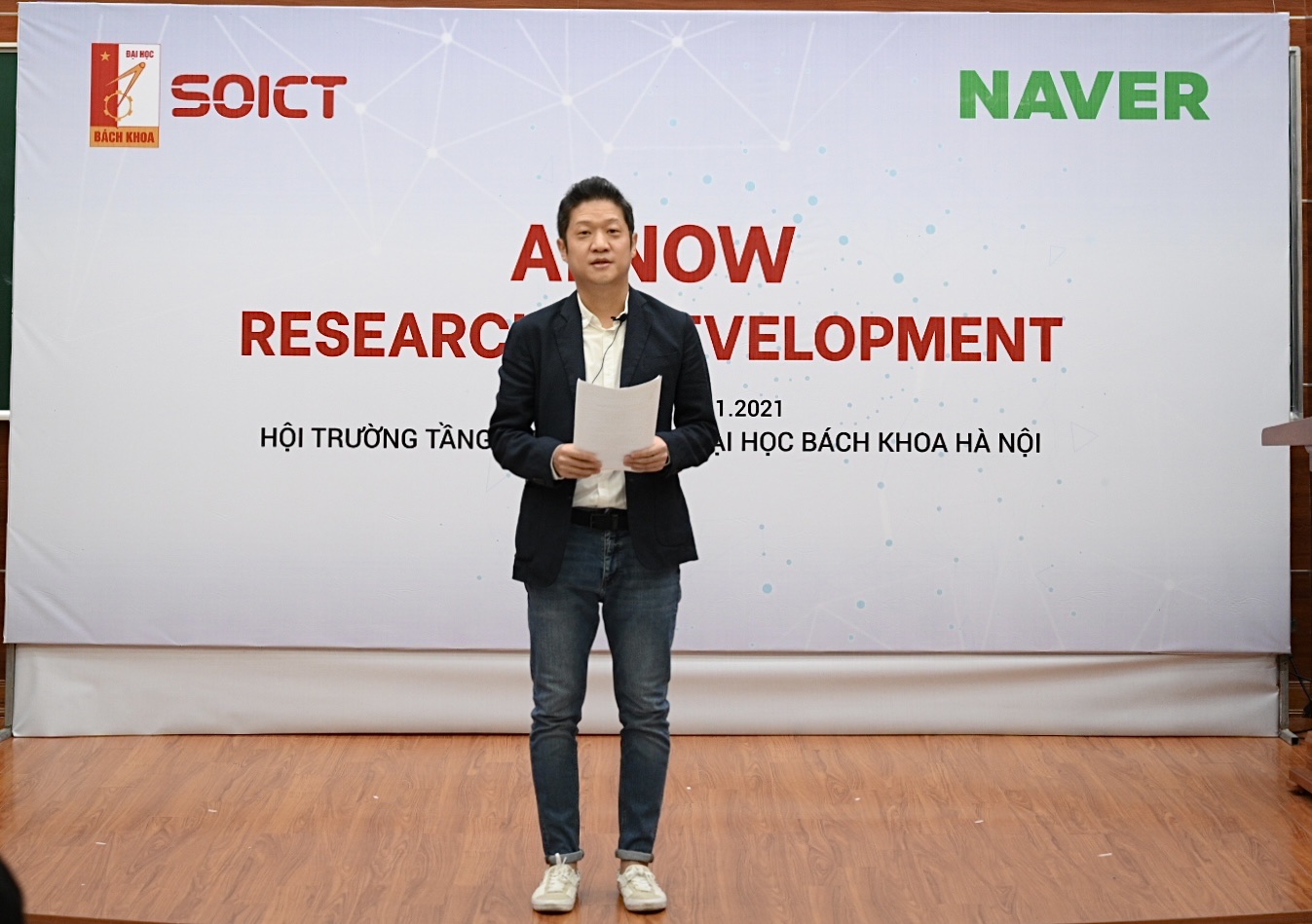 Khai mạc hội thảo, PGS. Huỳnh Đăng Chính, Phó Hiệu trưởng Trường Đại học Bách khoa Hà Nội nhấn mạnh: “Tôi đánh giá cao nỗ lực của Trường Công nghệ thông tin và Truyền thông, Trung tâm BK.AI trong việc phối hợp với Naver tổ chức hội thảo AI NOW. Các hội thảo khoa học đóng vai trò quan trọng trong việc tạo nên động lực thúc đẩy việc nghiên cứu và ứng dụng tại Đại học Bách khoa Hà Nội nói riêng và ở Việt Nam nói chung”.