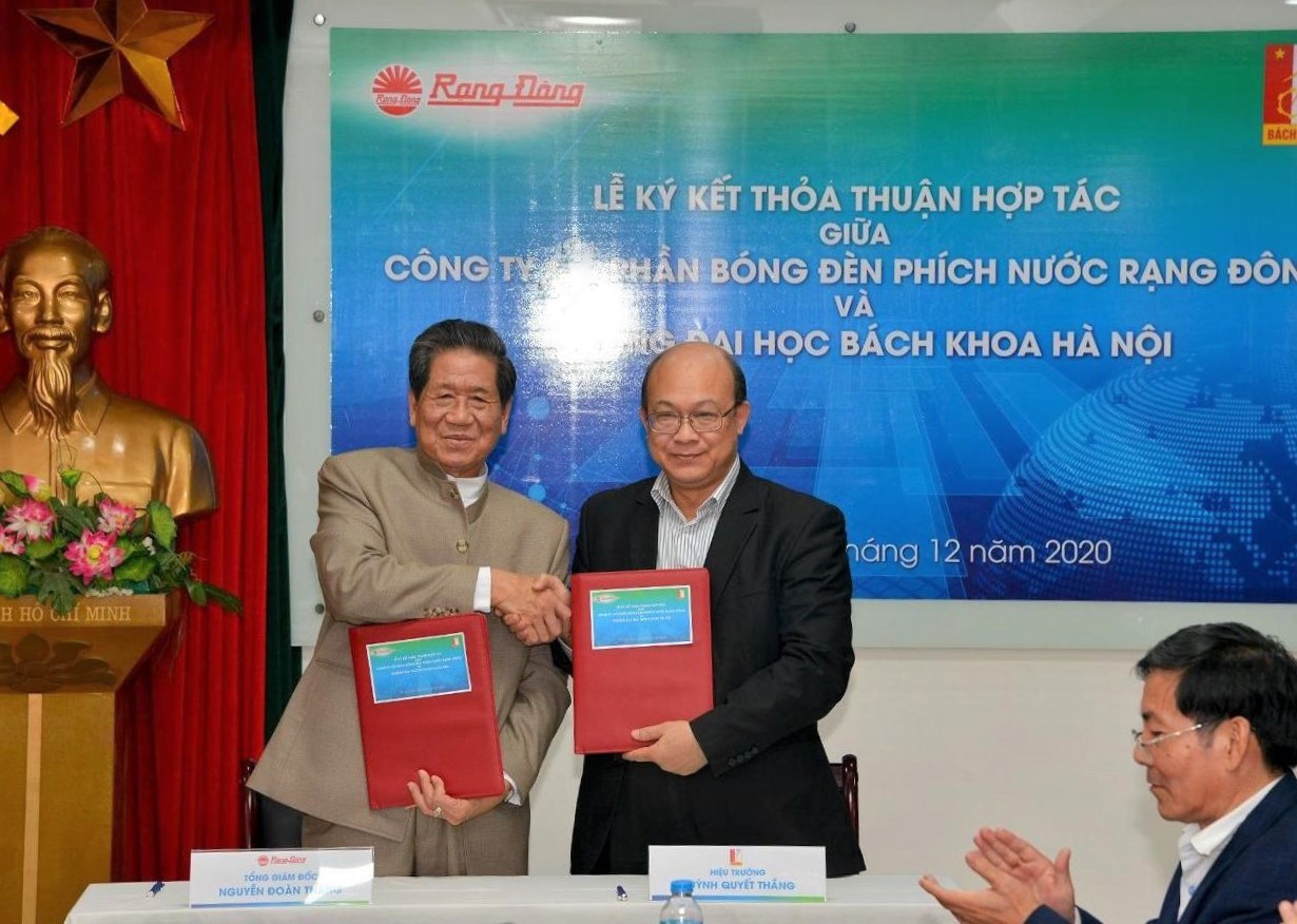 Công ty cổ phần Bóng đèn phích nước Rạng Đông và Trường Đại học Bách khoa Hà Nội ngày hôm nay ký thỏa thuận hợp tác với trọng tâm nghiên cứu và phát triển khoa học, công nghệ. Theo đó, hai bên thành lập nhóm nghiên cứu chung theo mô hình doanh nghiệp liên kết với trường đại học. Các học giả của Bách khoa Hà Nội sẽ tư vấn và hợp tác nghiên cứu các vấn đề khoa học và công nghệ phù hợp với ngành sản xuất của Rạng Đông. Hai bên cũng đặt mục tiêu cùng nhau tạo ra các sản phẩm mang thương hiệu chung.