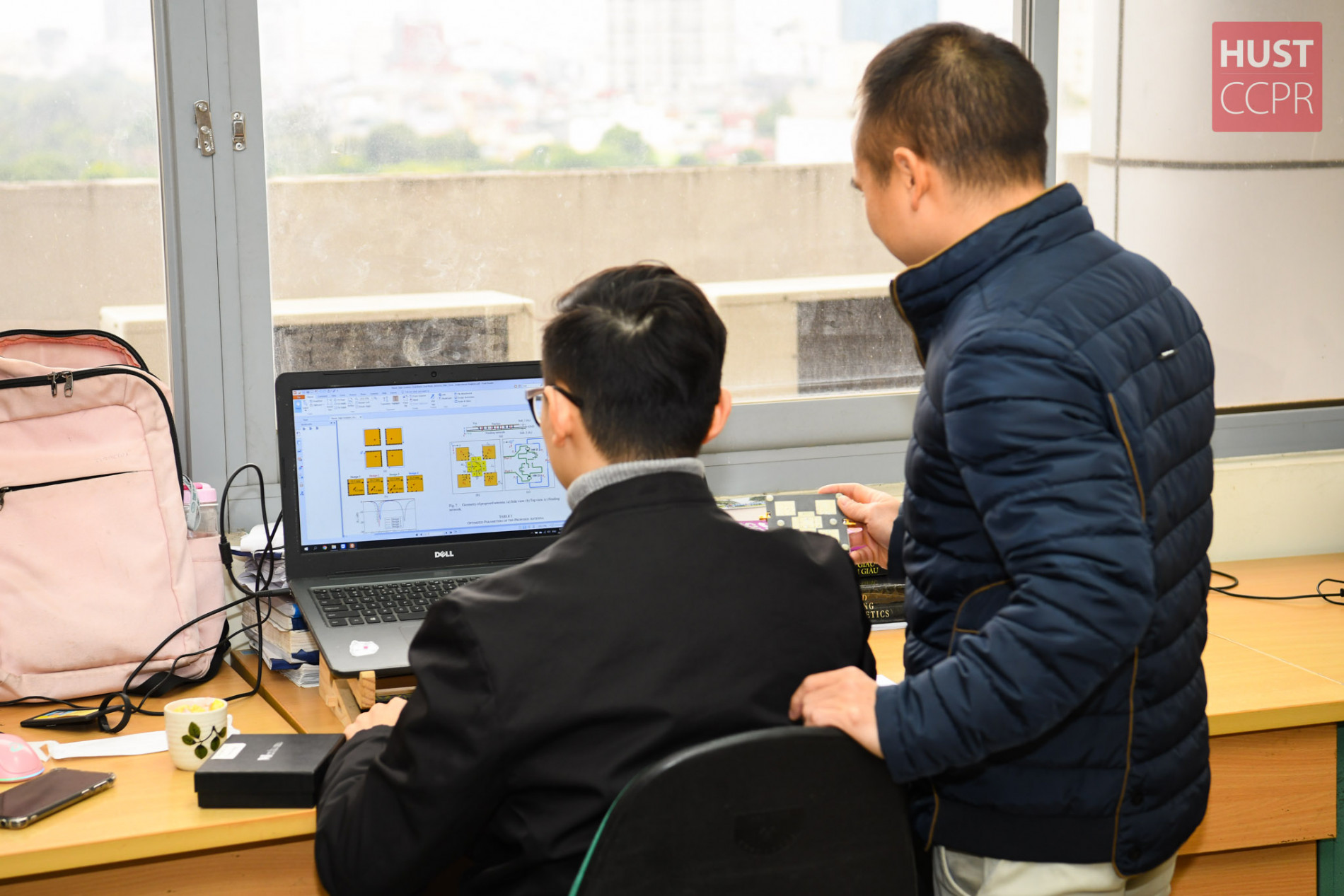 TS. Tạ Sơn Xuất hướng dẫn sinh viên Bùi Trần Hiển nghiên cứu tại CRD lab. Ảnh: CCPR