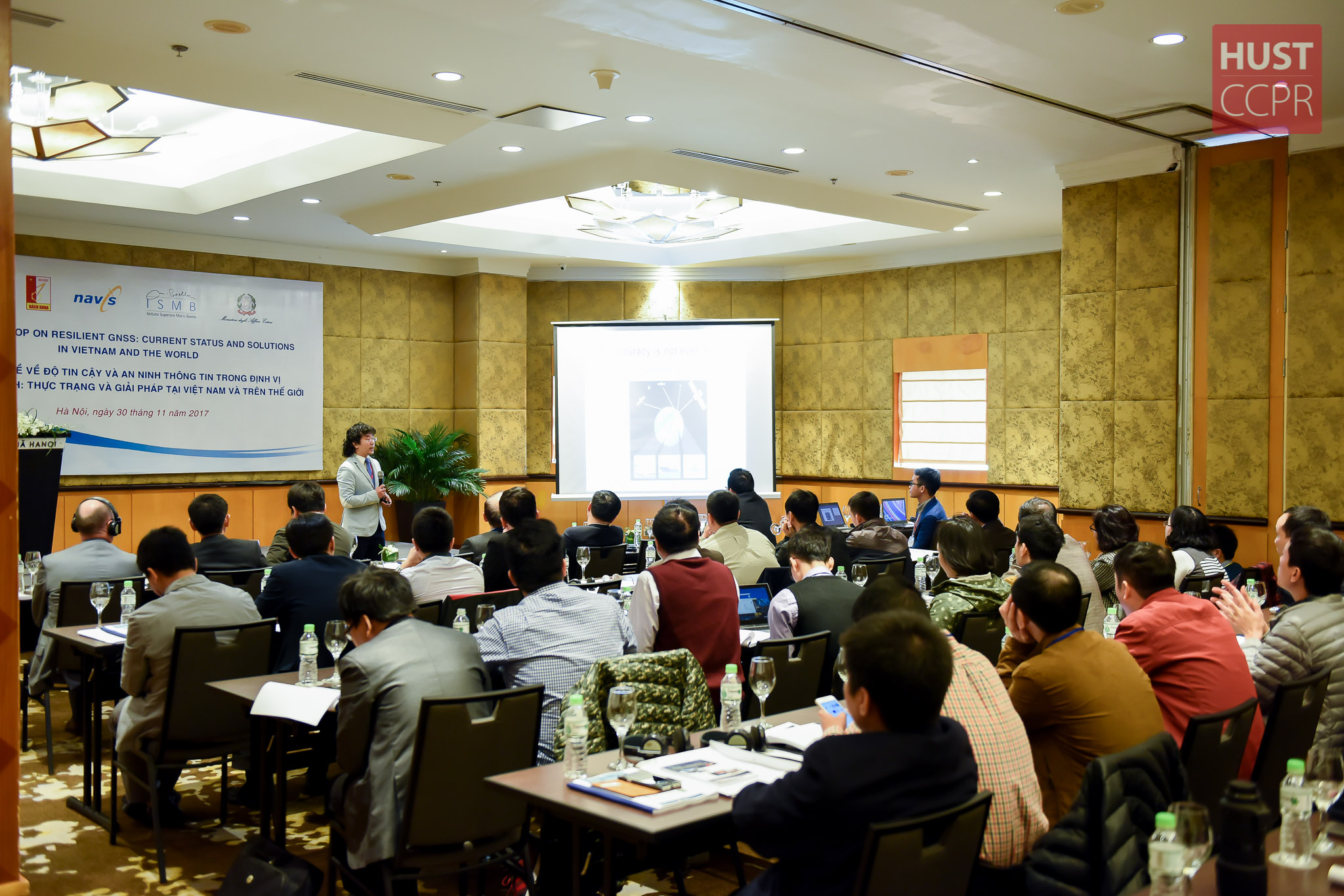 Trong khuôn khổ Hiệp định Hợp tác Khoa học và Công nghệ giữa Việt Nam và Cộng hòa Ý, sáng nay (30/11/2017), Trung tâm Nghiên cứu và Phát triển Công nghệ định vị sử dụng vệ tinh (NAVIS), Trường ĐHBK Hà Nội phối hợp với Viện Nghiên cứu Cao cấp Mario Boella (ISMB, Cộng hòa Ý) tổ chức Hội thảo “Các vấn đề về độ tin cậy và an toàn - an ninh thông tin trong định vị sử dụng vệ tinh: Thực trạng và giải pháp tại Việt Nam và trên Thế giới” tại Khách sạn Melia, Hà Nội với sự tham dự của hơn 60 nhà khoa học, nhà quản lý trong và ngoài nước.