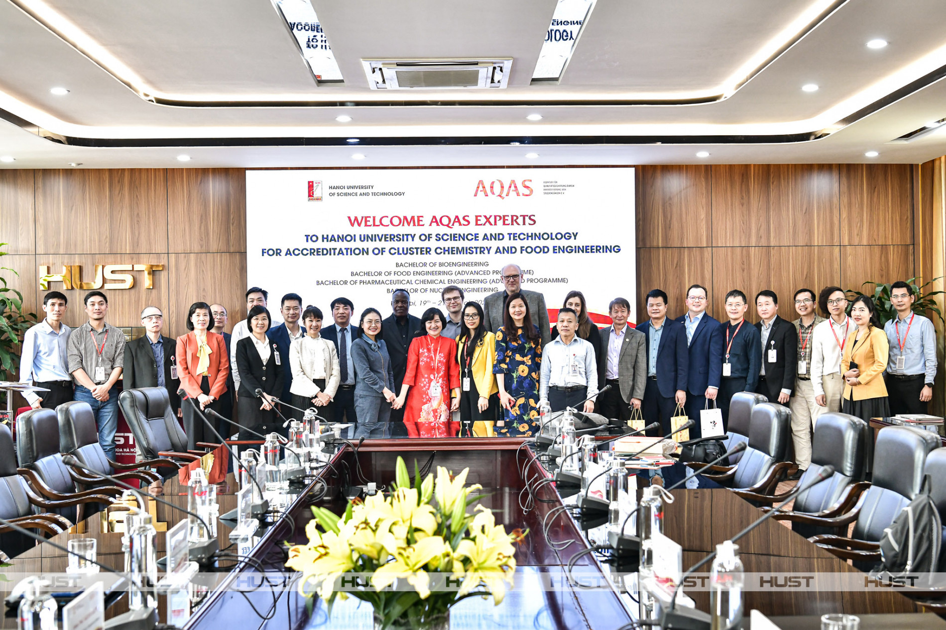 Thực hiện Chính sách chất lượng, đồng thời nhằm đảm bảo hoạt động cải tiến diễn ra thường xuyên và liên tục, trong quý I năm 2025, Nhà trường đã tổ chức 3 chương trình đánh giá ngoài theo tiêu chuẩn AQAS cho 10 CTĐT. Theo kế hoạch, tháng 4/2025, Đại học Bách khoa Hà Nội sẽ tiếp tục tổ chức đánh giá ngoài CTĐT theo tiêu chuẩn AUN-QA. Đoàn chuyên gia AQAS chụp ảnh kỷ niệm với lãnh đạo, giảng viên Đại học Bách khoa Hà Nội tại phiên bế mạc