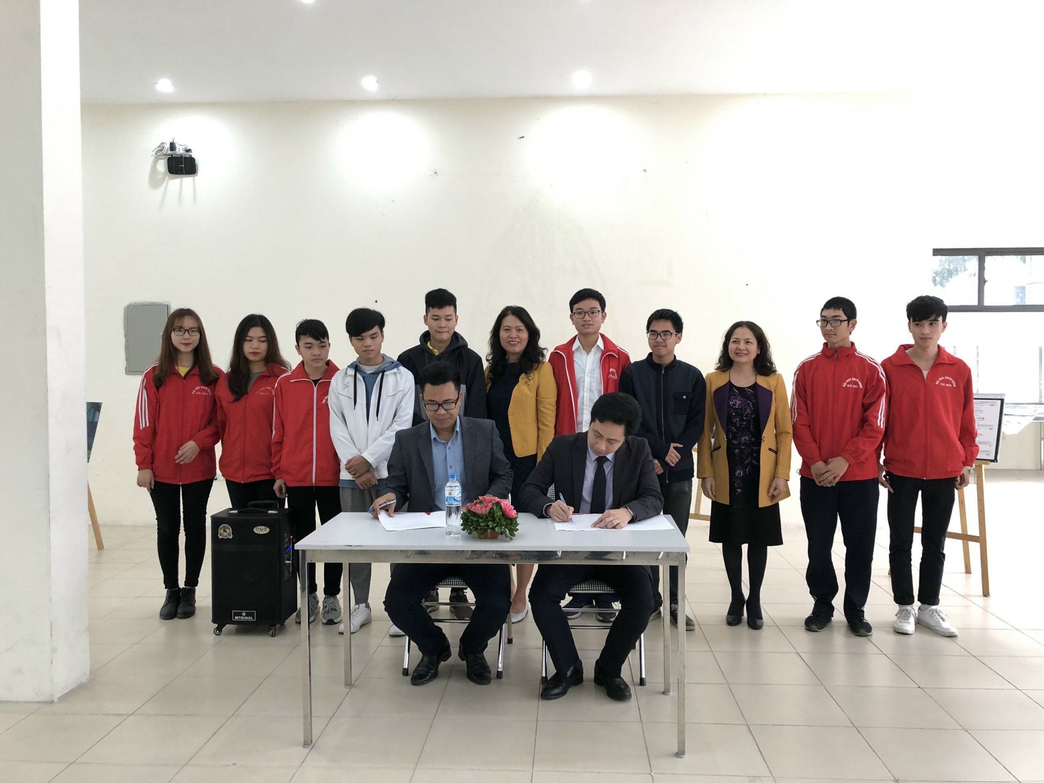 PGS. Đinh Văn Hải - Trưởng Phòng Công tác sinh viên và PGS. Lê Đức Tùng - nguyên Bí thư Đoàn TNCS HCM Trường Đại học Bách khoa Hà Nội ký kết thành lập Tổ tư vấn tâm lý sinh viên (26/3/2019).