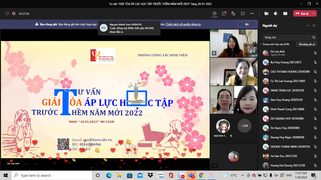 Một buổi tư vấn online của Tổ tư vấn tâm lý sinh viên