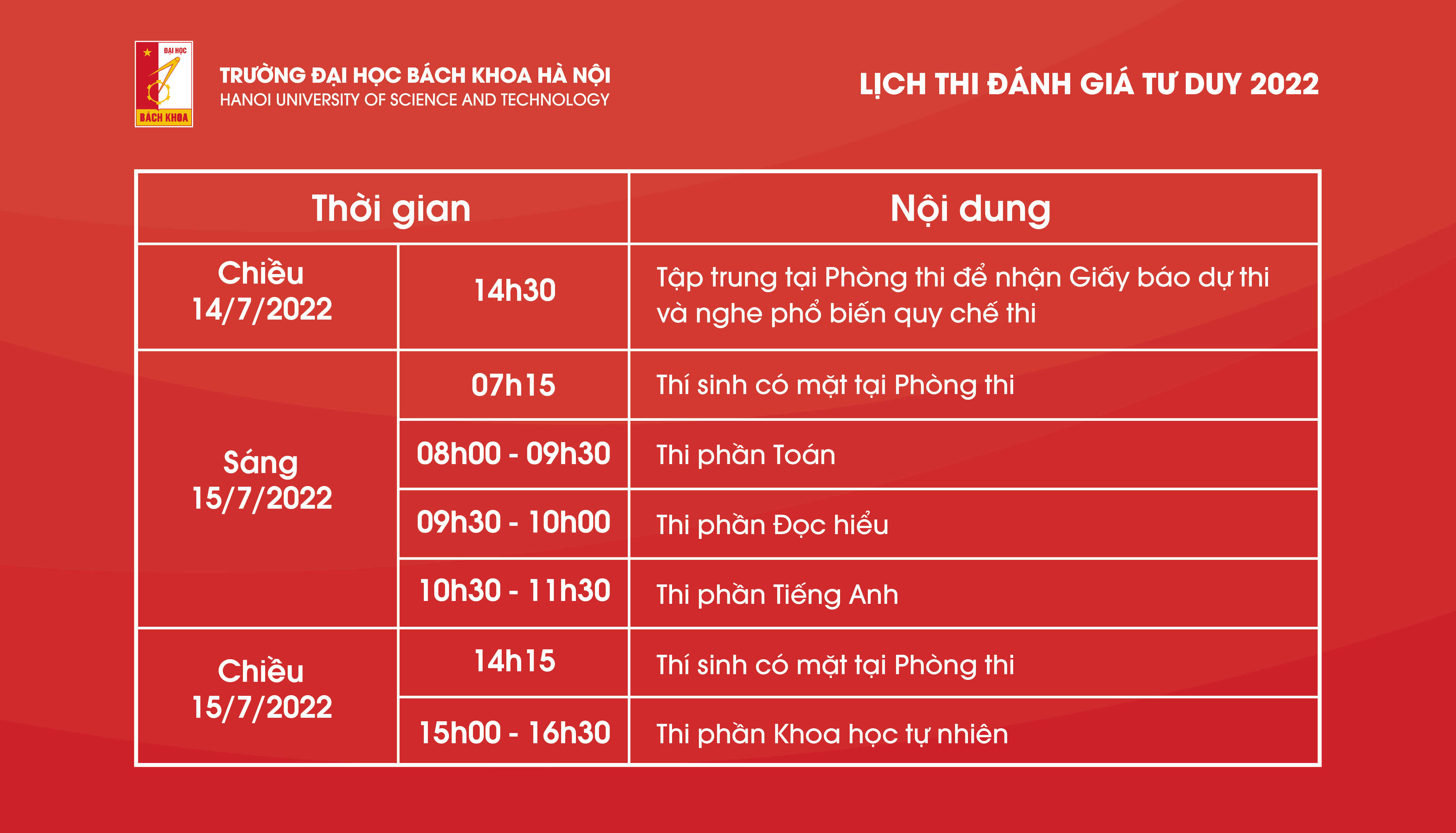 Lịch thi Kỳ thi đánh giá tư duy năm 2022 Trường Đại học Bách khoa Hà Nội