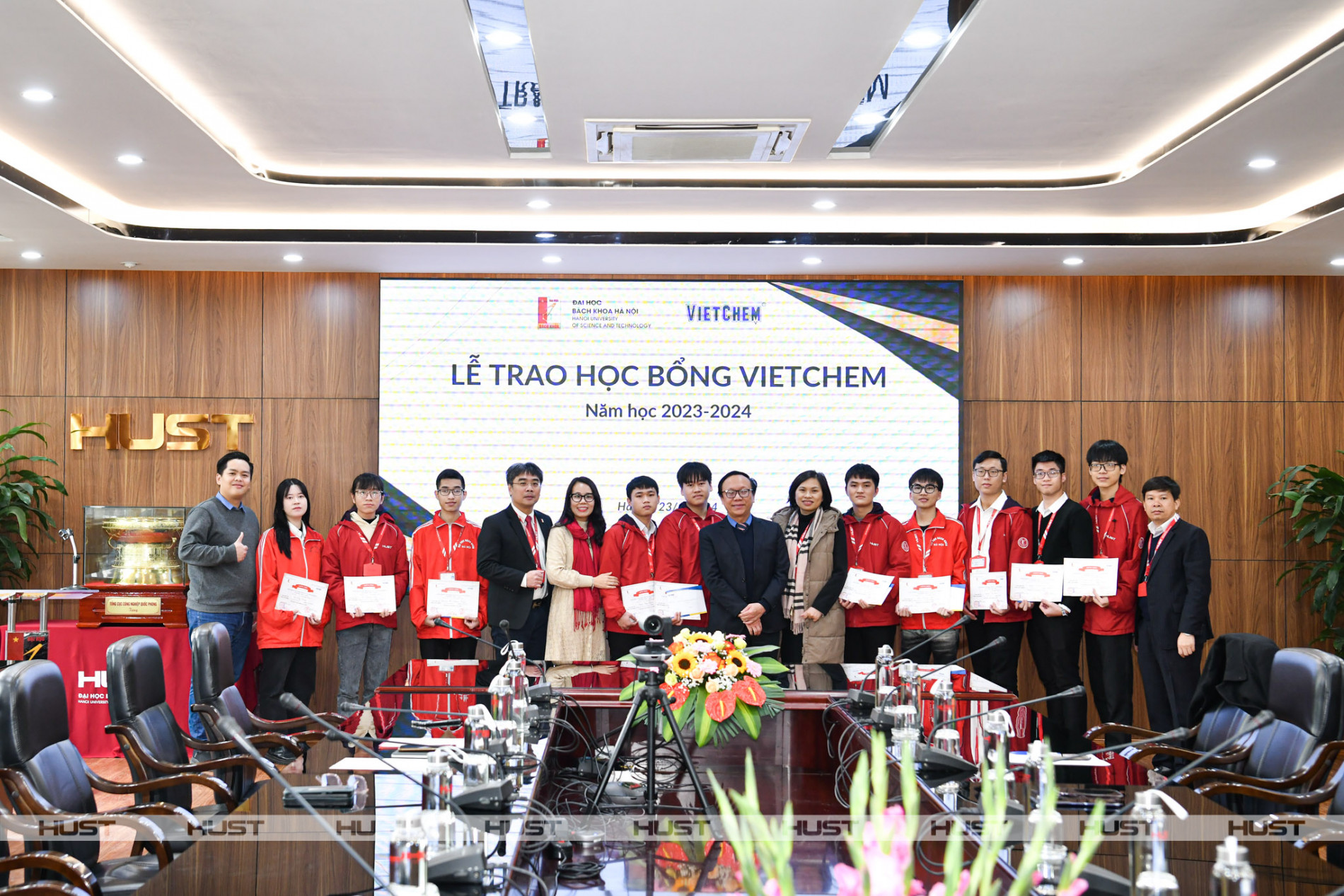 Trong năm học 2023-2024, VIETCHEM tiếp tục dành tặng 10 suất học bổng cho sinh viên Trường Hóa và Khoa học Sự sống; Trường Cơ khí; Trường Điện – Điện tử có điểm trung bình học tập CPA đến hết kì 2022.2 từ 3.0 trở lên và điểm trung bình rèn luyện năm học 2022-2023 từ 65 điểm trở lên.