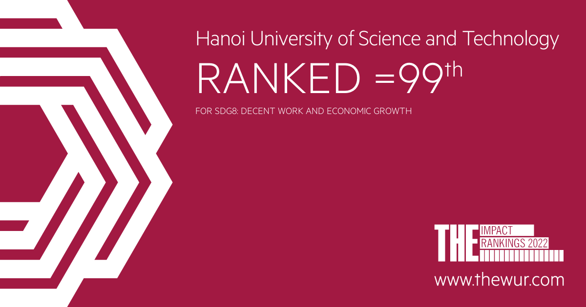 Mục tiêu SDG8 Công việc tốt và tăng trưởng kinh tế của Bách khoa Hà Nội liên tục tăng hạng trong 3 năm trở lại đây, xếp thứ 99 và nằm trong top 12% thế giới. Xếp hạng này tập trung vào vai trò thúc đẩy phát triển kinh tế và trách nhiệm của trường đại học tạo việc làm đầy đủ, năng suất và việc làm tốt cho tất cả mọi người.