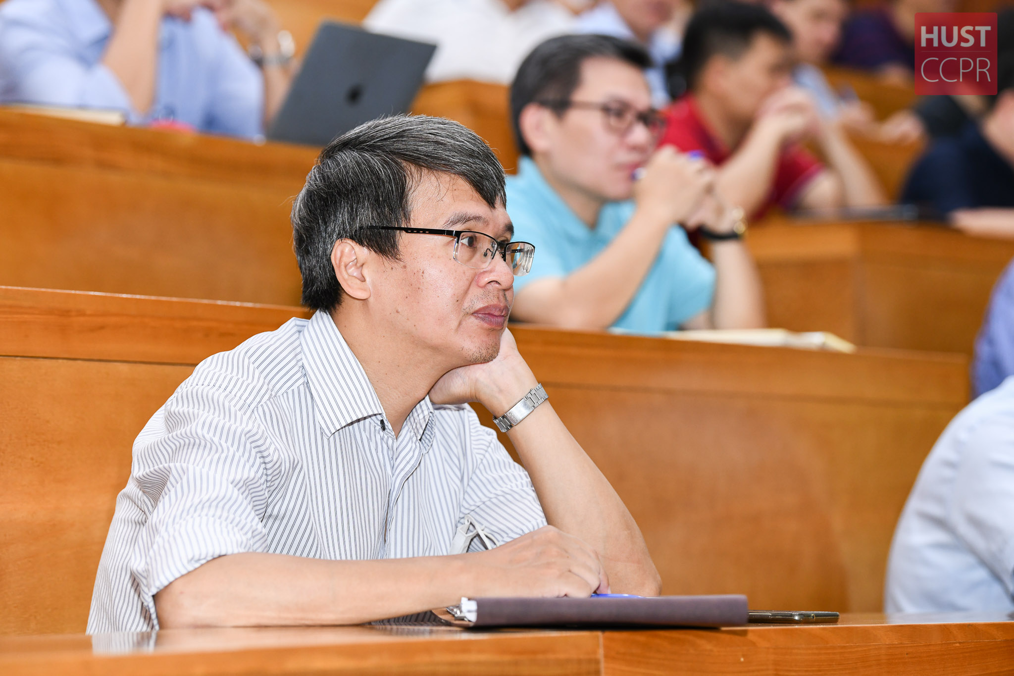 Cán bộ chủ chốt Trường Đại học Bách khoa Hà Nội chăm chú theo dõi bài giảng của chuyên gia