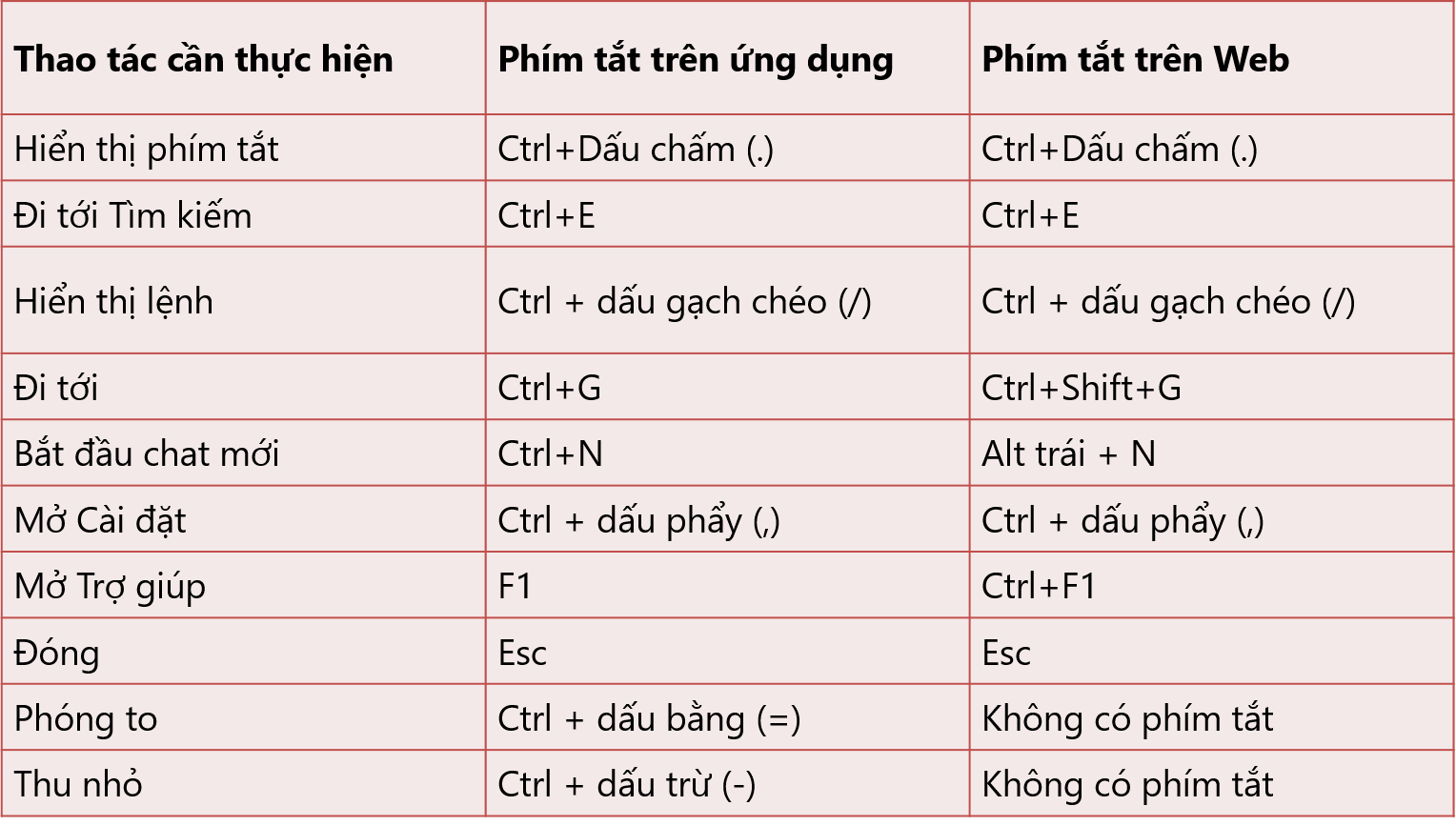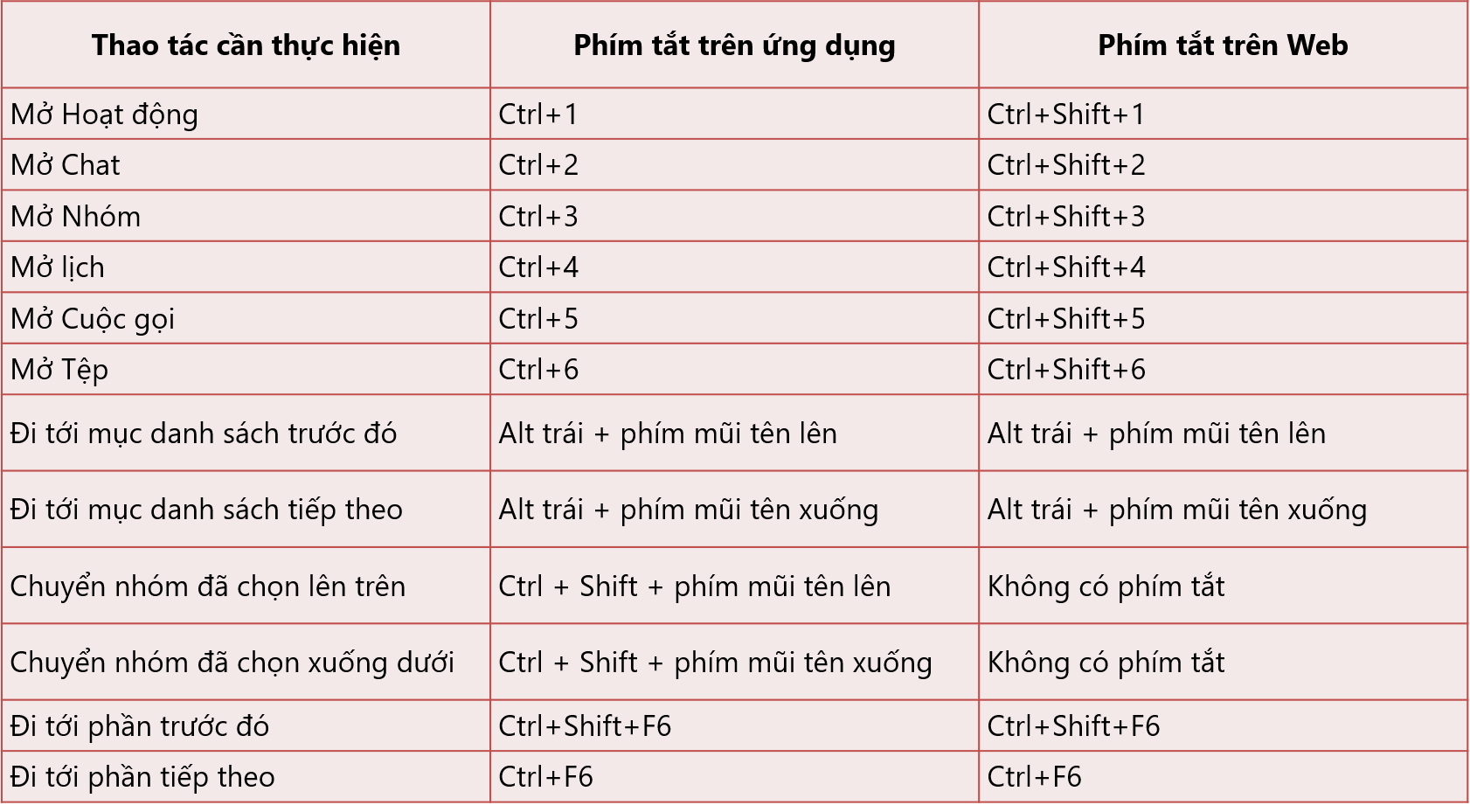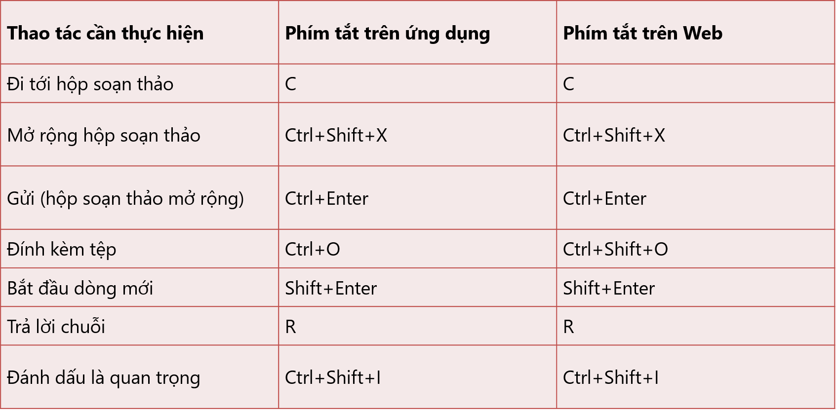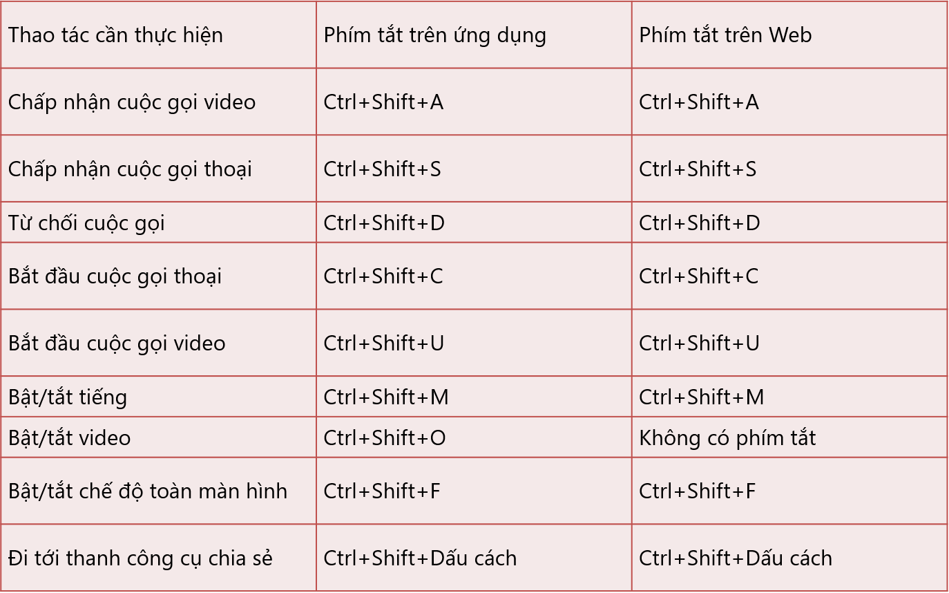 Phím tắt sử dụng trong cuộc họp và cuộc gọi