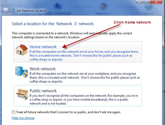 Bước 1: Trước tiên bạn cần phải chuyển mạng của bạn về chế độ Home Network. Vào Control Panel - > Network and Internet, sau đó bạn chọn Network and Sharing Center.