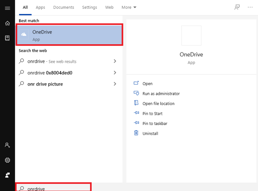 Bước 1: Tại thanh tìm kiếm của Windows 10, gõ OneDrive và chọn kết quả hiển thị. Nếu không tìm thấy có thể tải App Onedrive tại đây. https://www.microsoft.com/vi-vn/microsoft-365/onedrive/download