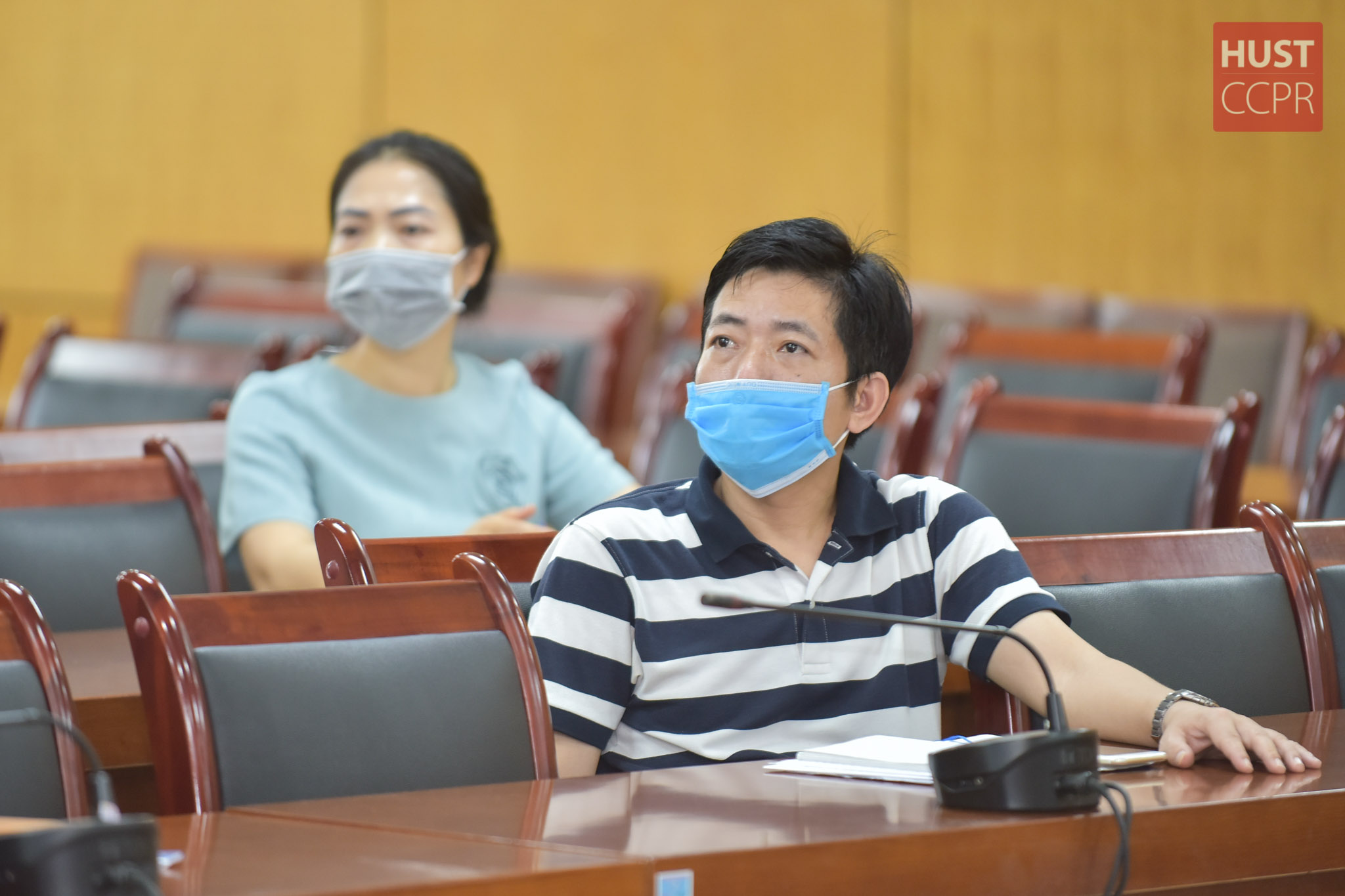 Một số cán bộ, giảng viên Trường Đại học Bách khoa Hà Nội tham gia buổi tập huấn tại phòng hội thảo của Trường ngày 21/5.