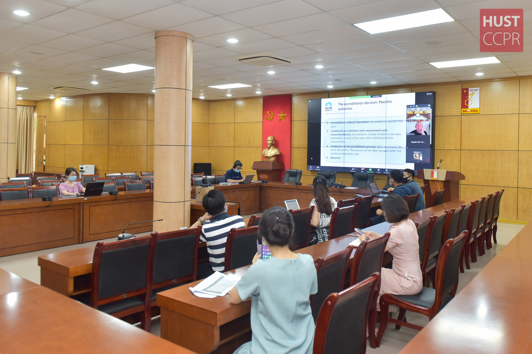 Chiều 21/5/2021, chương trình Tập huấn trực tuyến về “Nội dung tiêu chuẩn kiểm định châu Âu (ASIIN) phục vụ báo cáo tự đánh giá cấp Chương trình đào tạo” đã được Trường Đại học Bách khoa Hà Nội tổ chức theo hai hình thức trực tuyến và ngoại tuyến.