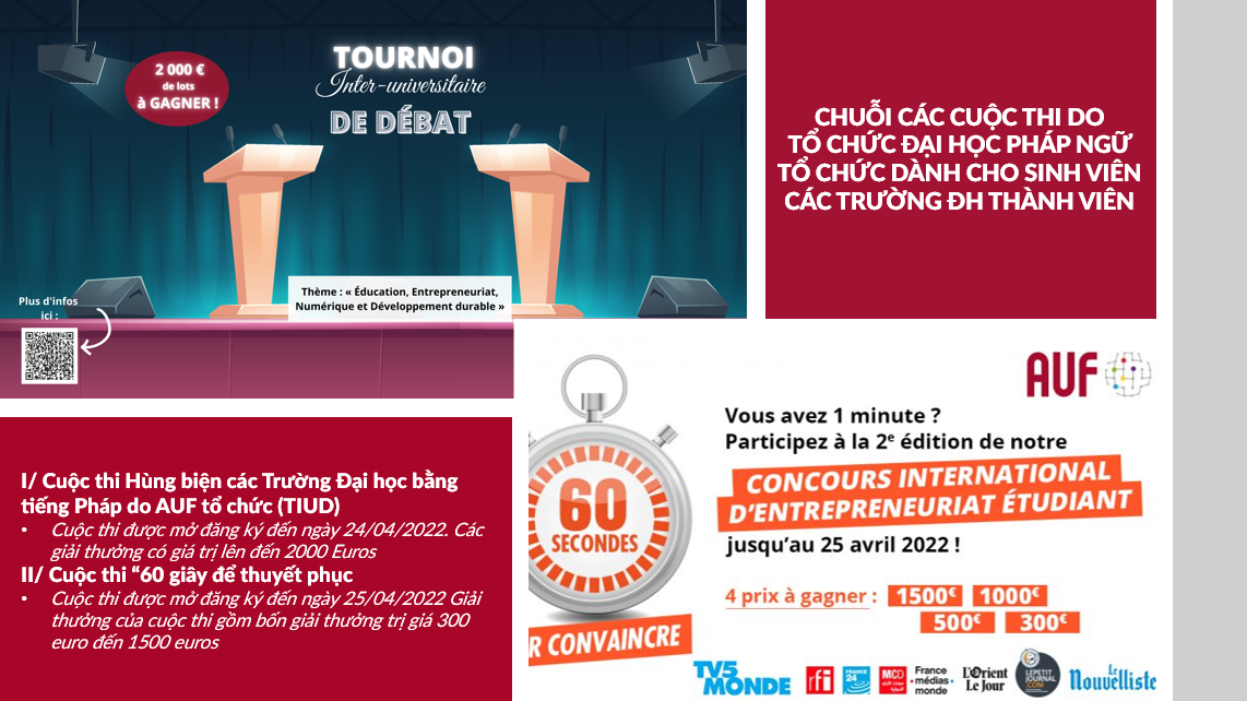 I/ Cuộc thi Hùng biện các Trường Đại học bằng tiếng Pháp do AUF tổ chức (TIUD)