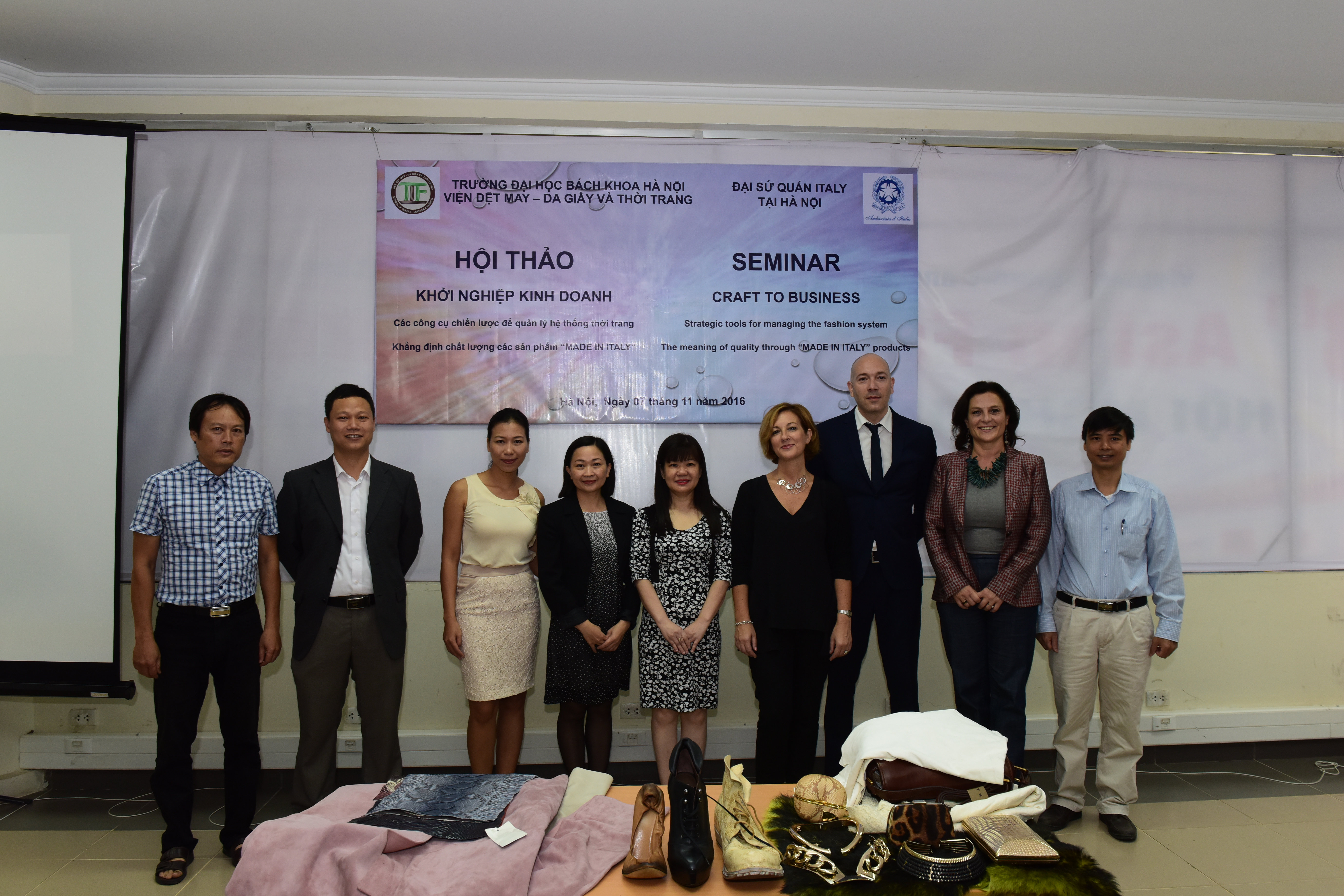 Ngày 7/11/2016, tại P923, Tòa nhà Tạ Quang Bửu, Viện Dệt may – Da giầy và Thời Trang hợp tác với Tổ chức phát triển hợp tác văn hóa giáo dục (Uni-Italia) tổ chức Hội thảo với chủ đề “Craft to business – Strategic tools for managing the fashion system and the meaning of quality through made in Italy Products” nhằm trao đổi về công cụ quản lý hệ thống thời trang, chia sẻ kinh nghiệm thực tiễn sản xuất nhằm tăng hiệu quả đào tạo cho sinh viên của Viện.