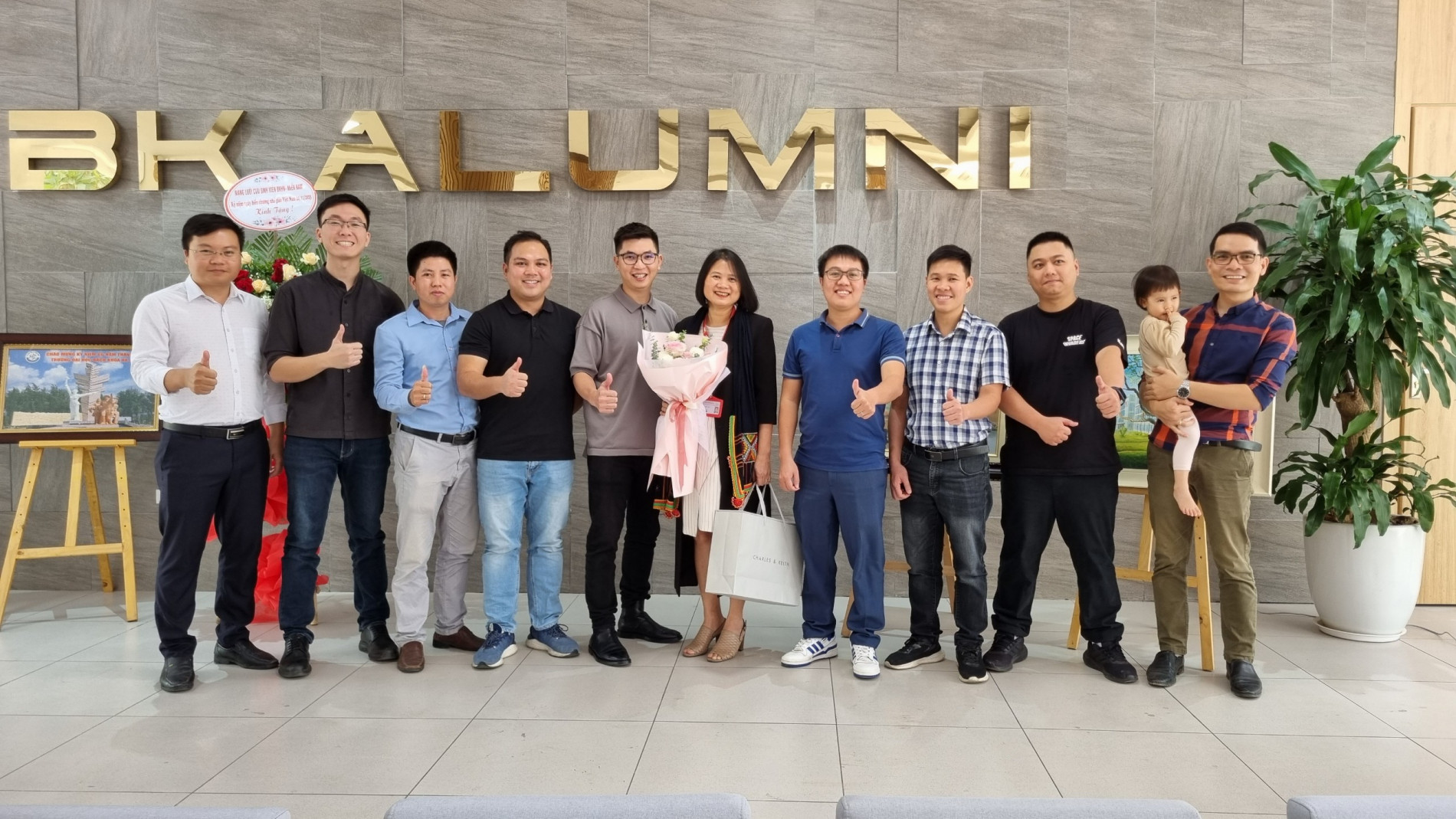 Chị Ánh Hằng chụp ảnh lưu niệm cùng các cựu sinh viên ĐHBK Hà NộiKhoảnh khắc hạnh phúc với nghề giáo