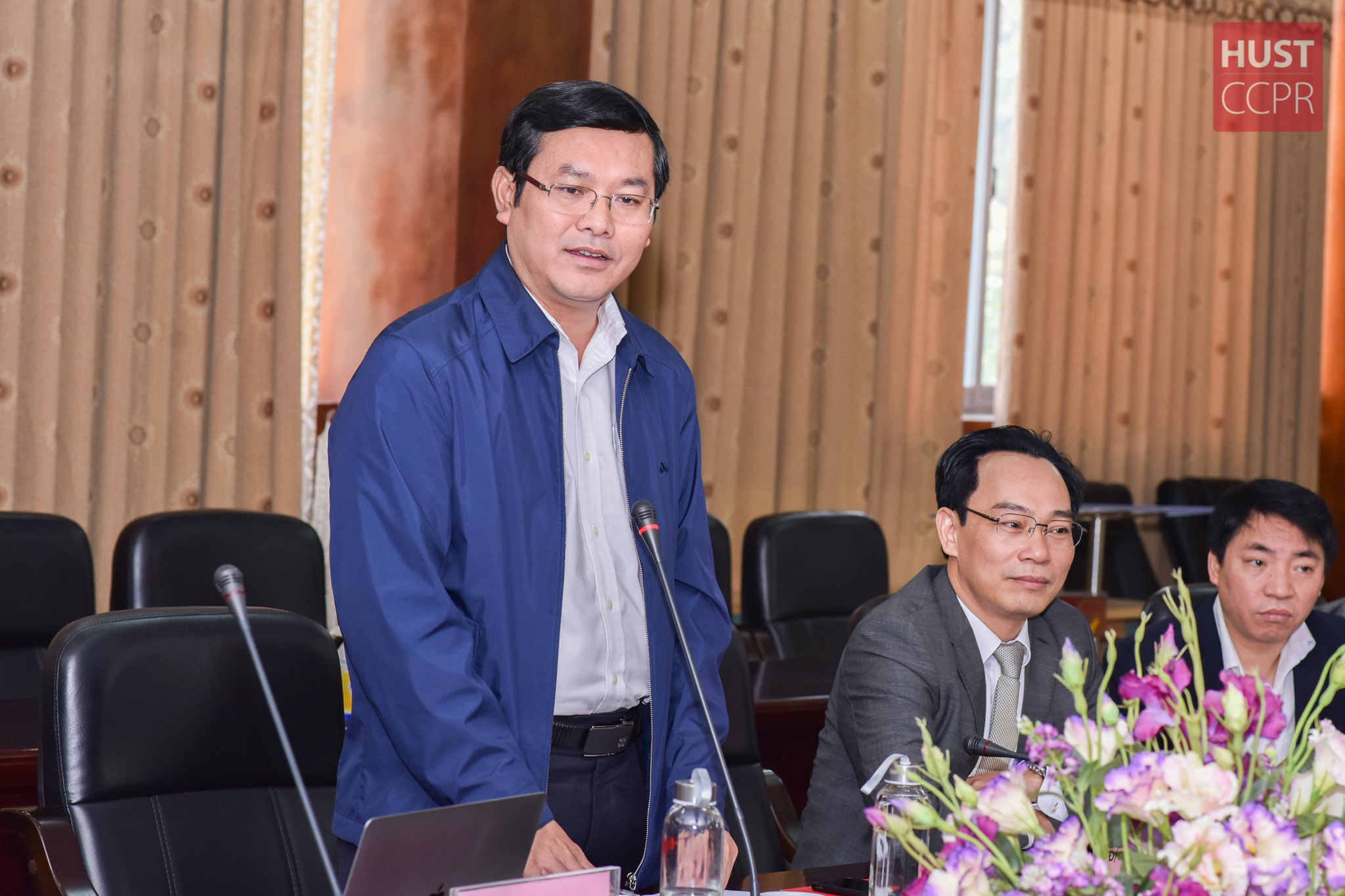 Tiếp và làm việc cùng đoàn công tác, về phía Trường ĐH Bách khoa Hà Nội có các đồng chí: PGS.TS Hoàng Minh Sơn – Bí thư Đảng ủy, Hiệu trưởng; PGS.TS Trần Văn Tớp – Phó Bí thư Đảng ủy, Phó Hiệu trưởng; GS.TS Đinh Văn Phong – Đảng ủy viên, Phó Hiệu trưởng; TS Bùi Đức Hùng – Chủ tịch Công đoàn cùng các thành viên Hội đồng TĐKT Trường.