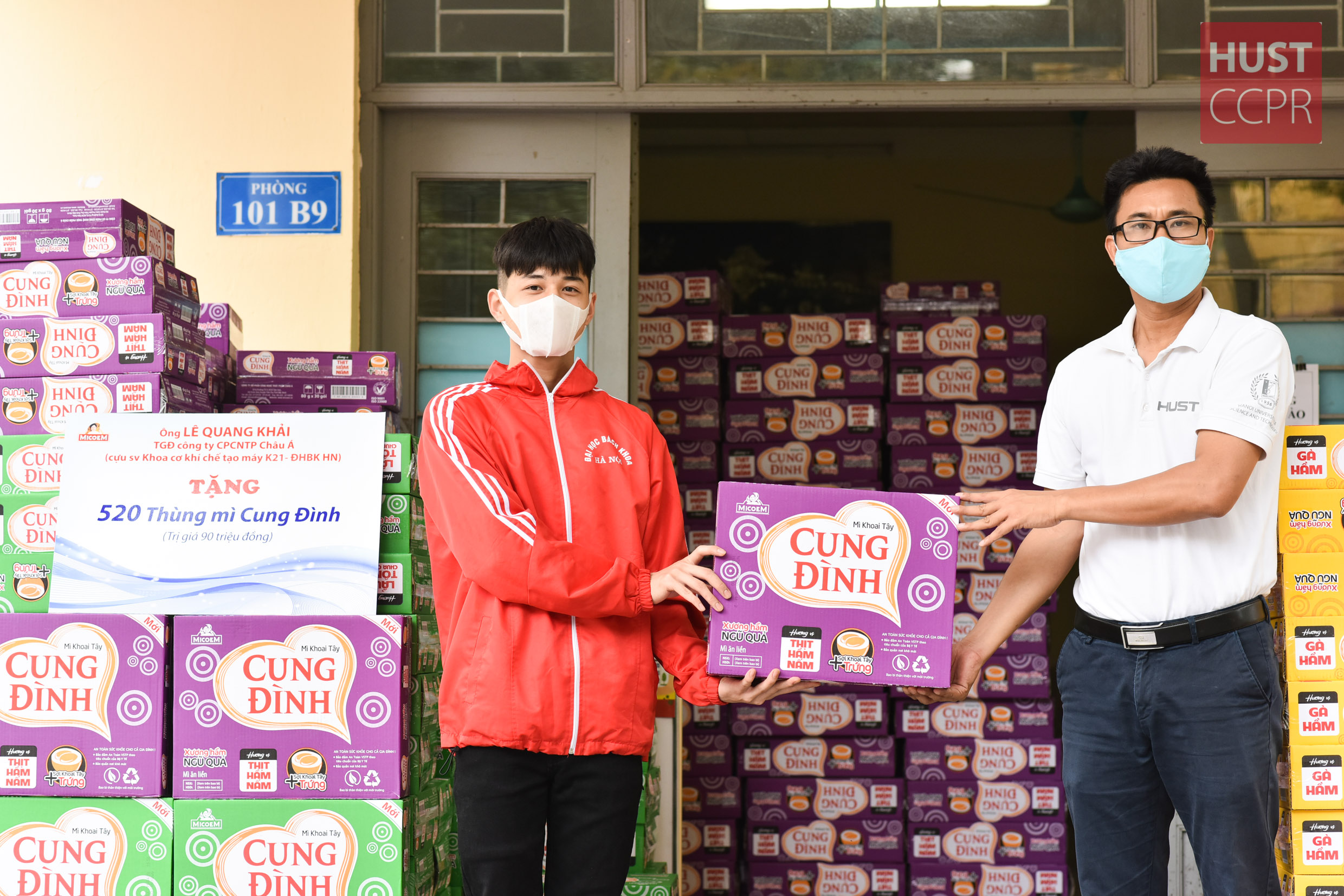 Hưởng ứng lời kêu gọi đóng góp của nhà trường trong dịch bệnh COVID-19, sáng ngày 16/4, 520 thùng mỳ được trao tặng cho hơn 500 sinh viên đang ở tại Ký túc xá trường Đại học Bách khoa Hà Nội. Anh Lê Quang Khải, cựu sinh viên K21 ngành Chế tạo máy, Tổng Giám đốc Công ty TNHH Công nghệ thực phẩm Châu Á, đồng thời là Phó Chủ tịch Ban Điều phối Mạng lưới Cựu sinh viên ĐHBK Hà Nội ủng hộ, trao tặng cho các sinh viên.