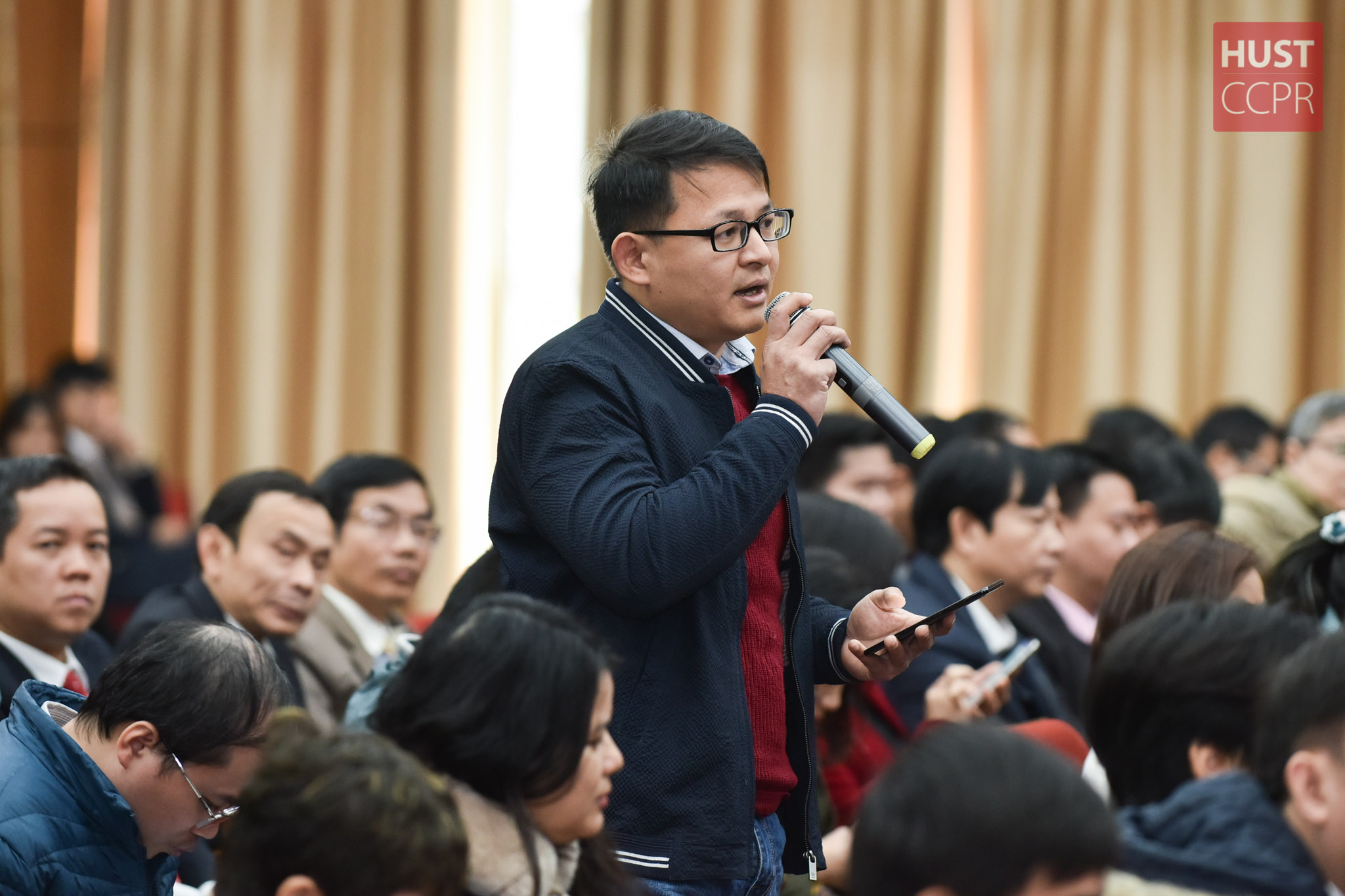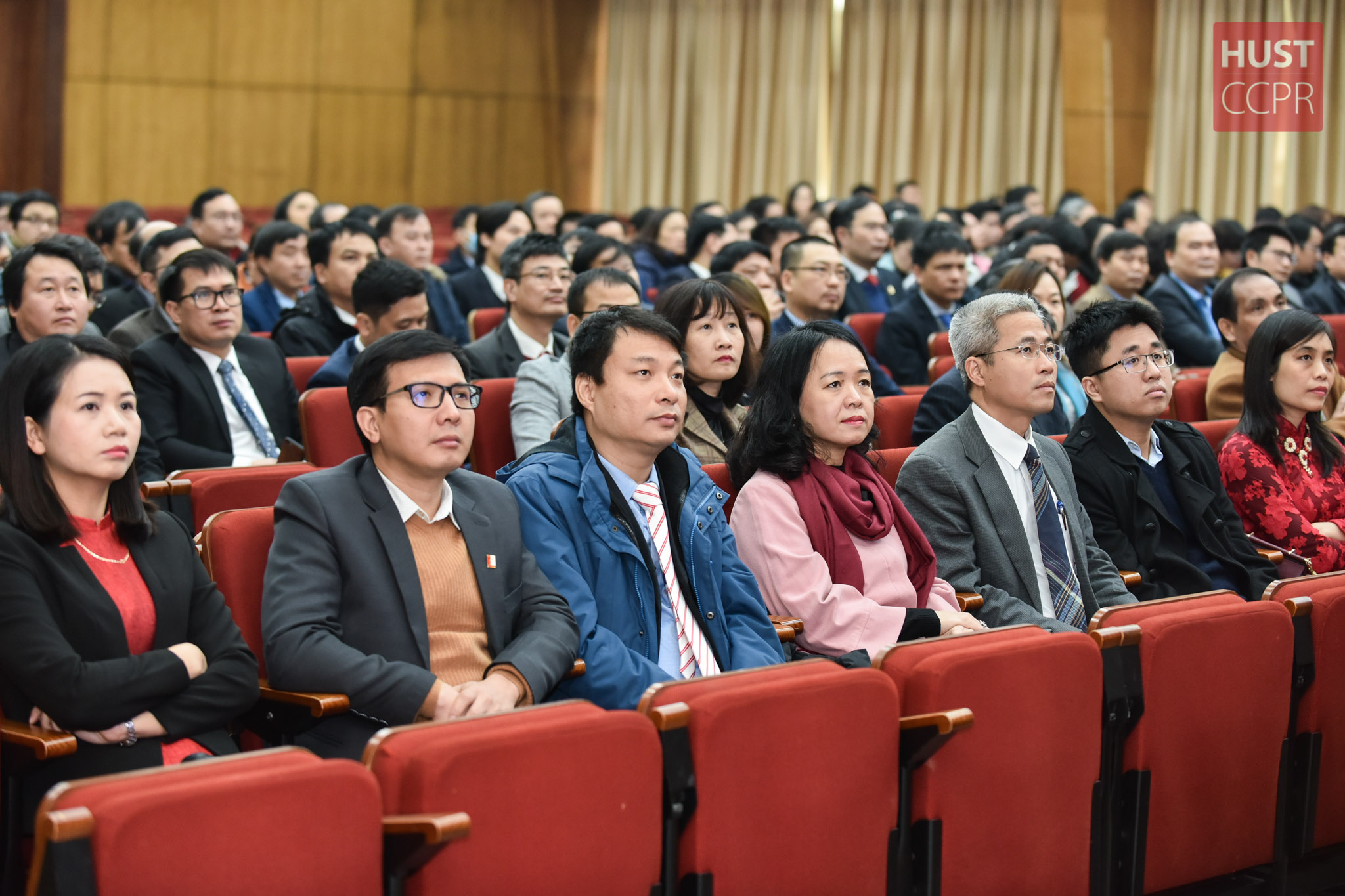 Các đại biểu Trường Đại học Bách khoa Hà Nội tham dự Hội nghị Cán bộ Viên chức năm 2020 diễn ra ngày 19/1 tại hội trường C2. Ảnh: Duy Thành.