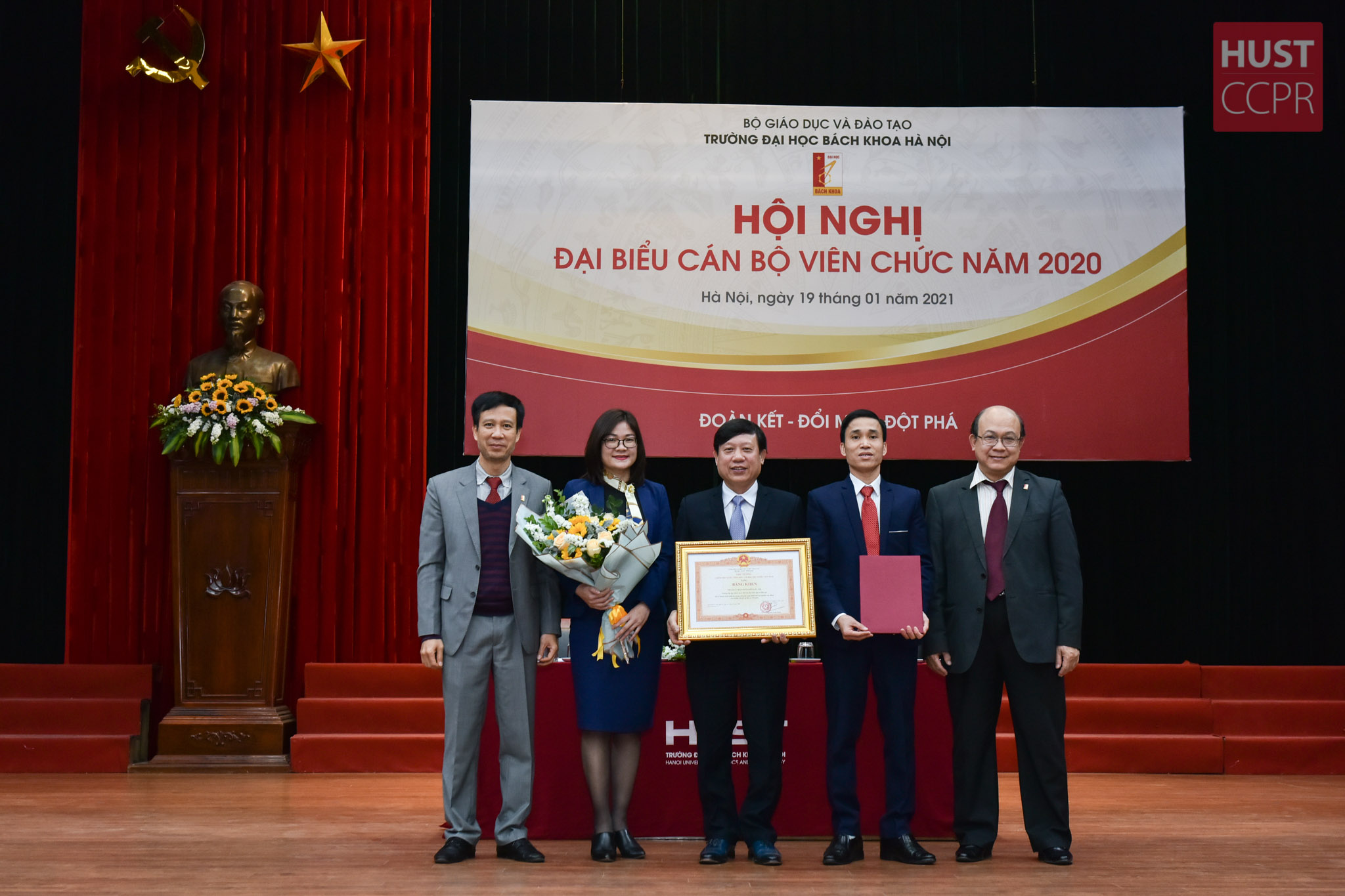 Sáng 19/1, Trường Đại học Bách khoa Hà Nội tổ chức Hội nghị đại biểu cán bộ viên chức năm 2020. Thực hiện theo phương châm “Đoàn kết – Đổi mới – Đột phá”, Ban Giám hiệu đề ra 9 nhiệm vụ trọng tâm của năm 2021 – năm đầu tiên của giai đoạn phát triển mới để Bách khoa Hà Nội trở thành một đại học nghiên cứu đa lĩnh vực.