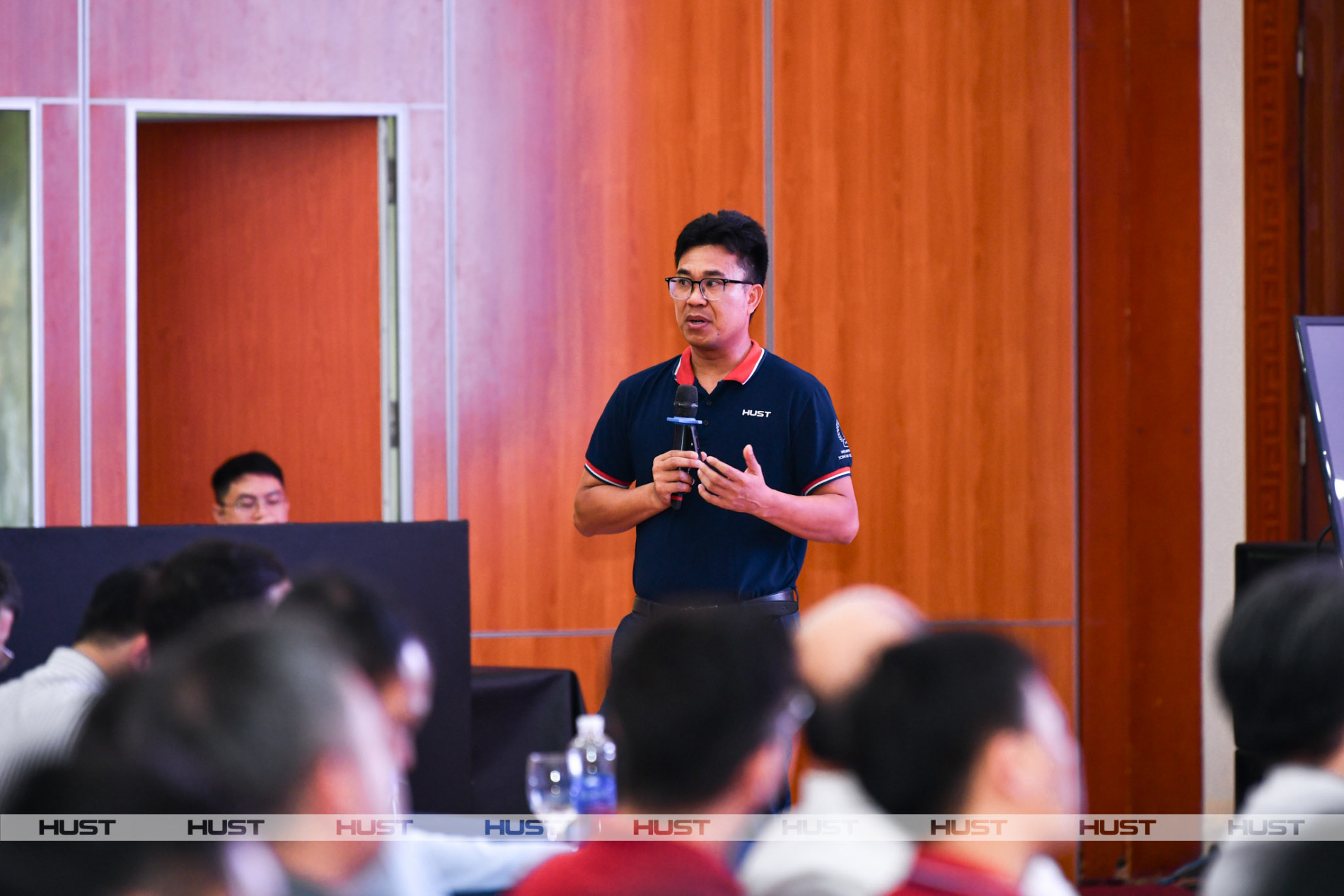 Hội nghị đã lắng nghe báo cáo tham luận của PGS. Đinh Văn Hải – Giám đốc Trung tâm Truyền thông và Tri thức số - về nội dung: Định vị thương hiệu Đại học Bách khoa Hà Nội, góc nhìn từ giảng viên – cán bộ và sinh viên. PGS. Đinh Văn Hải – Giám đốc Trung tâm Truyền thông và Tri thức số - báo cáo tham luận có chủ đề: Định vị thương hiệu ĐHBK Hà Nội, góc nhìn từ giảng viên – cán bộ và sinh viên