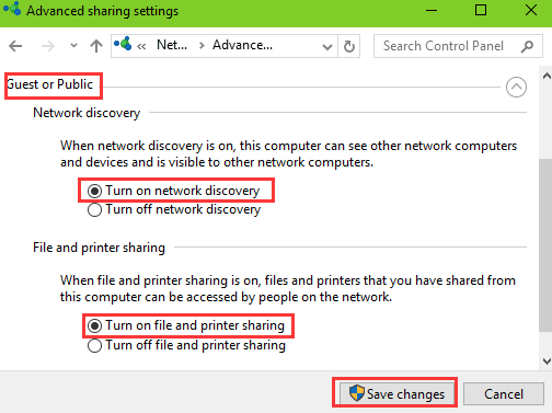 Bật tính năng chia sẻ tệp, máy in và bật tài khoản khách sẽ hữu ích khi khắc phục sự cố “Windows 10 không thể truy cập vào mạng LAN”.
