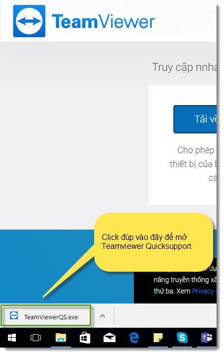 Bước 2: Click đúp vào chương trình vừa tải về để chạy chương trình Teamviewer Quicksupport
