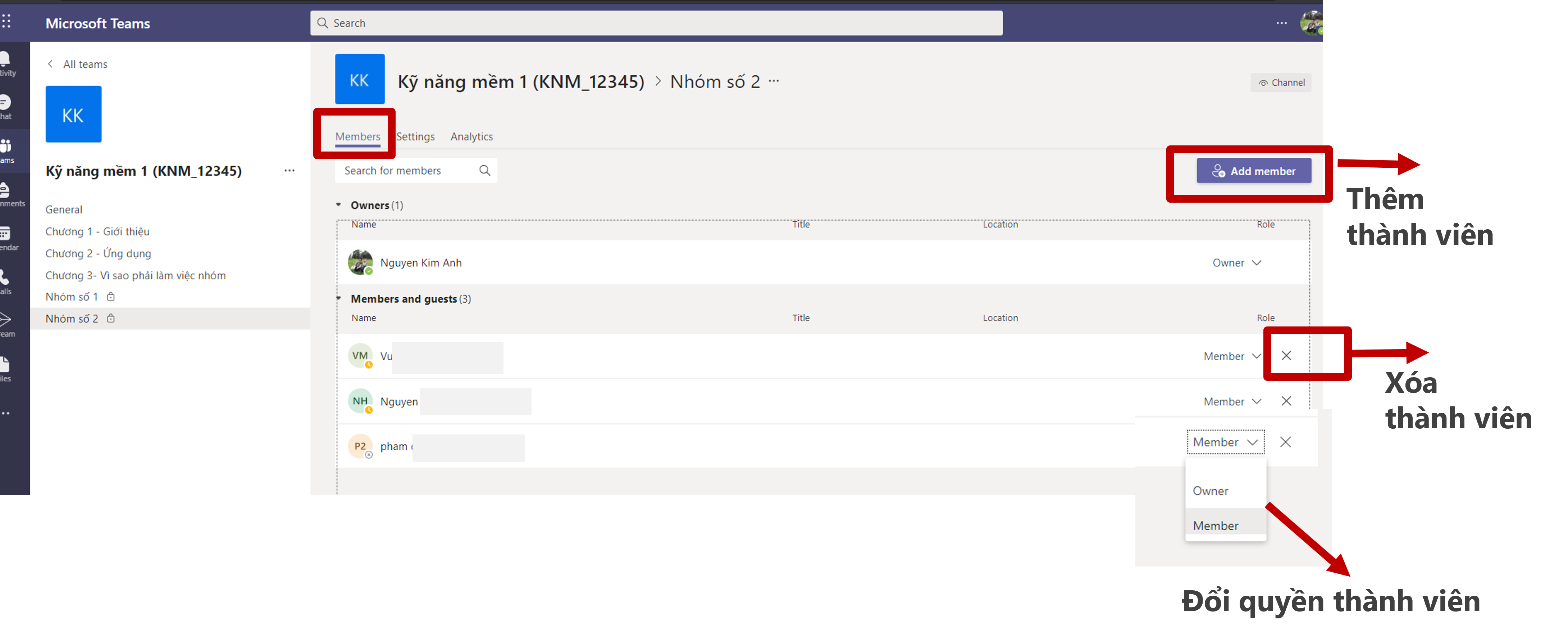 Vào Member xem thành viên hoặc Thêm/ Xóa thành viên