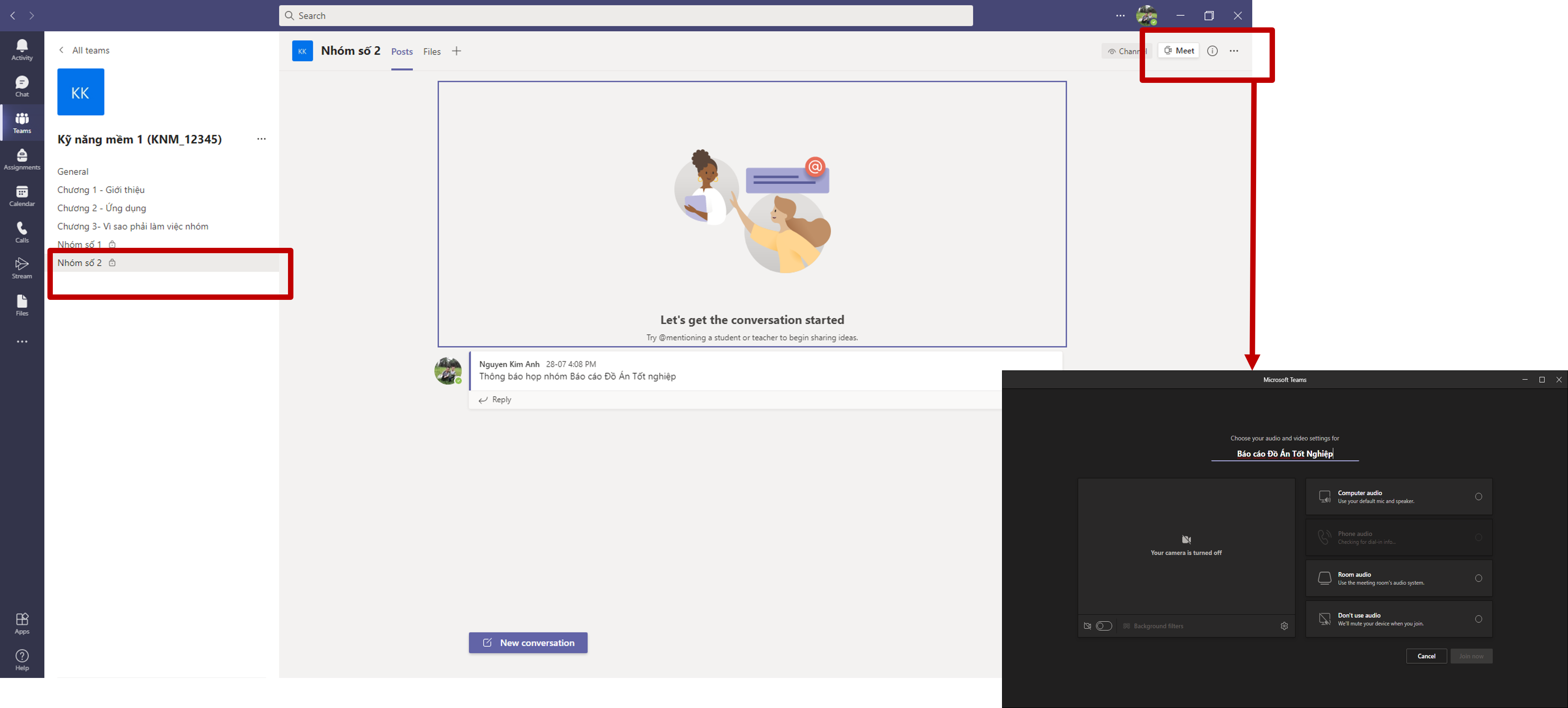 Thiết lập nội dung cuộc họp cho cả nhóm