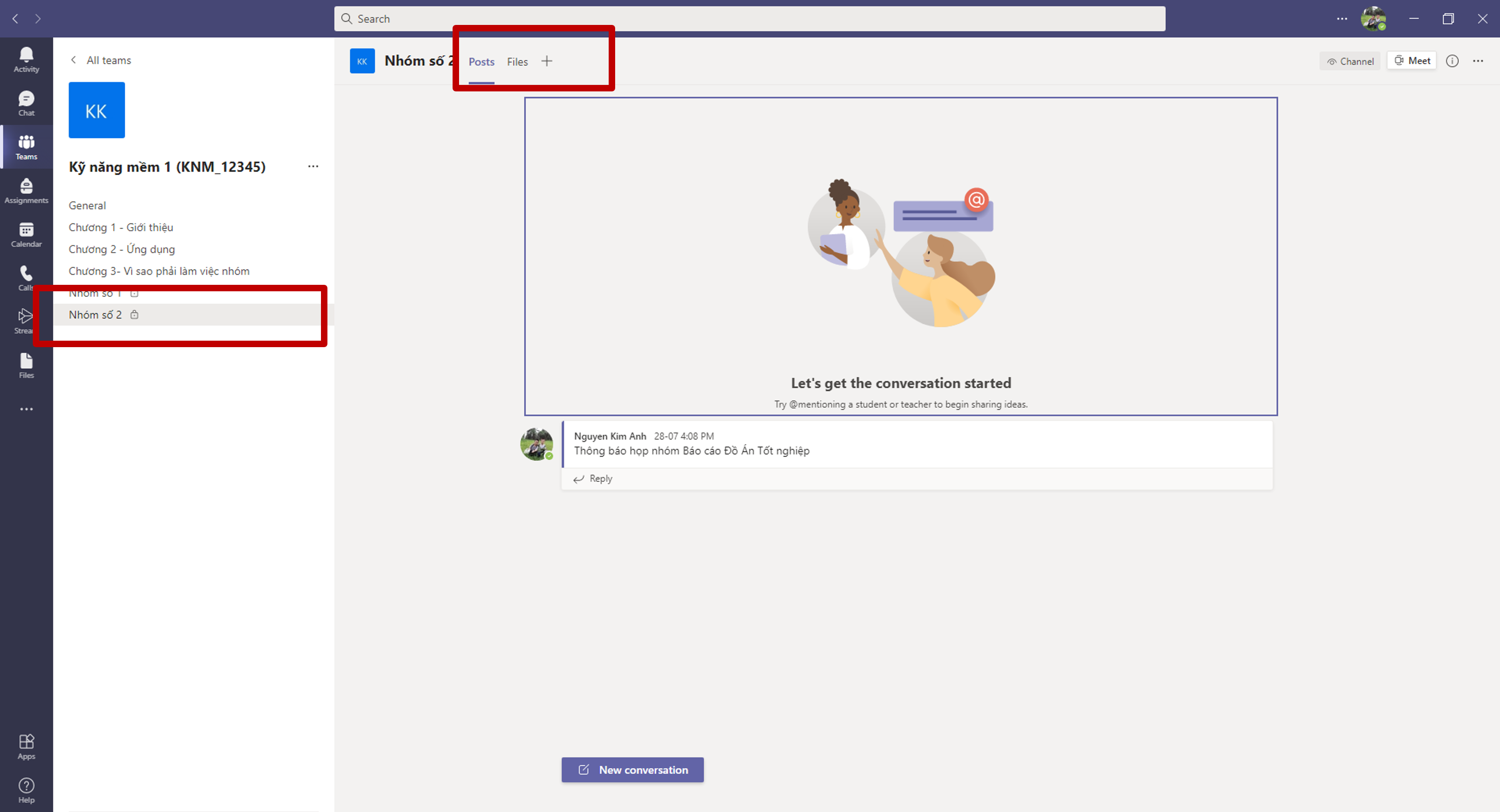 Thêm các bài viết hoặc chia sẻ file tại thẻ Post hoặc File