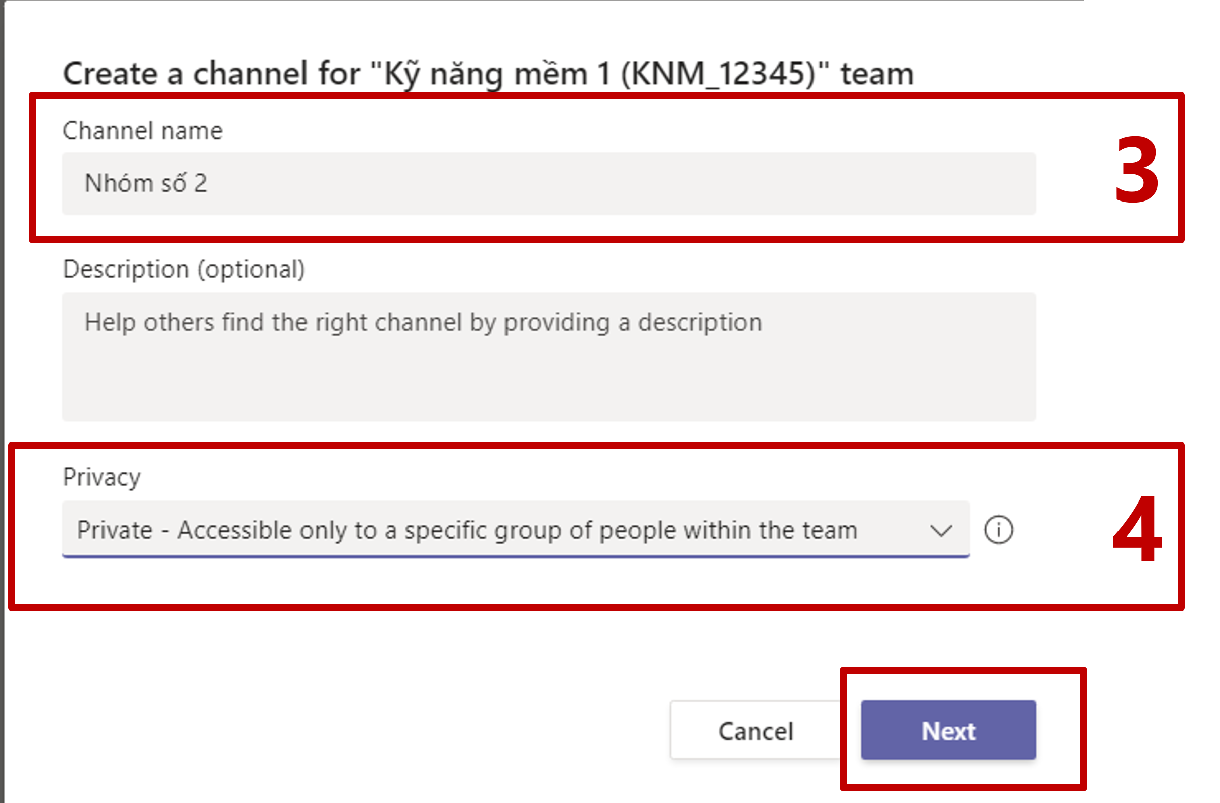 Bước 3,4. Đặt tên cho nhóm và đặt chế độ cho nhóm là nhóm kín