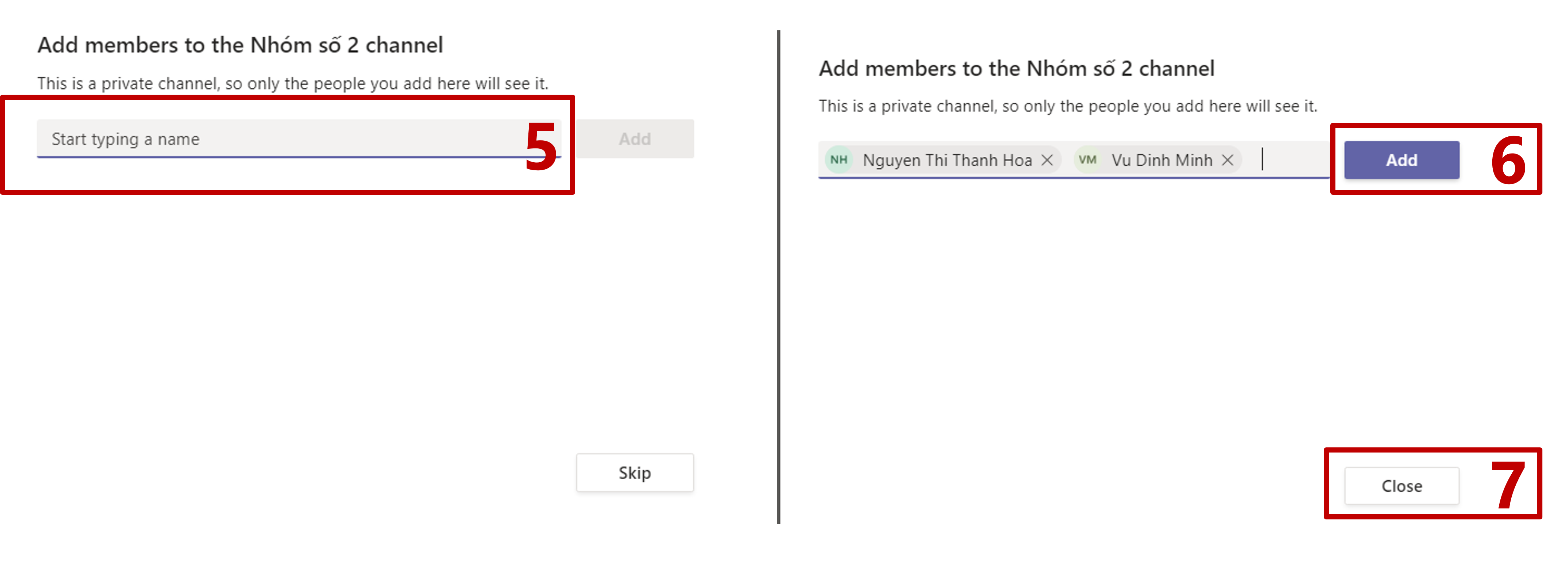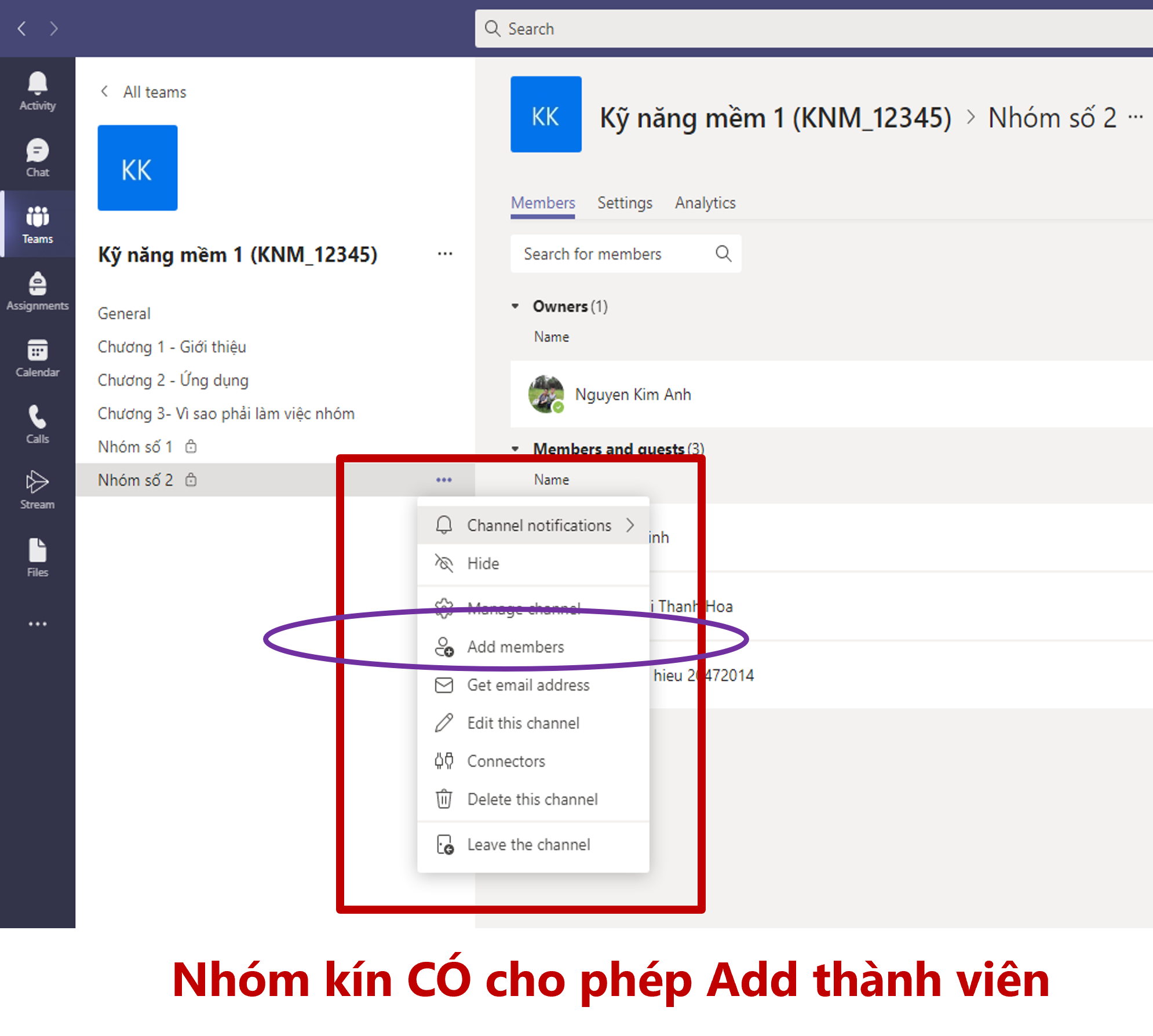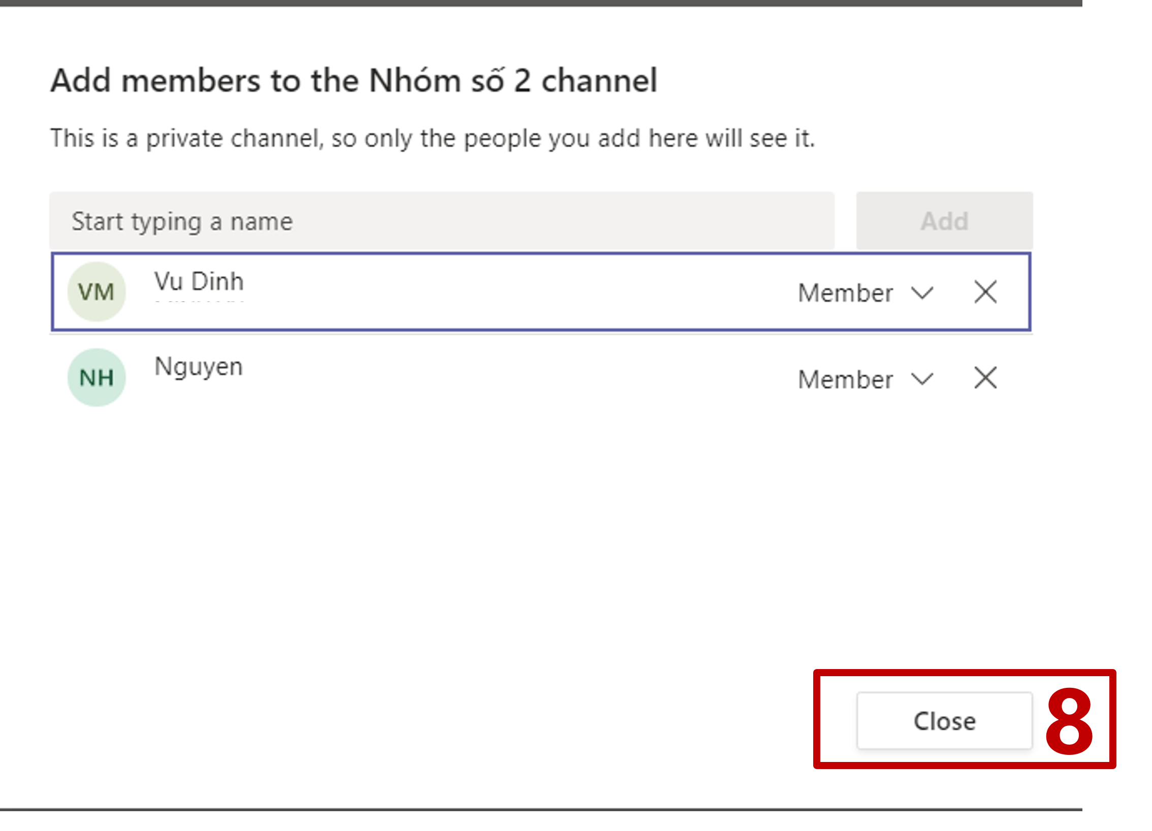 Tiếp theo chúng ta Add thành viên chỉ định vào nhóm kín
